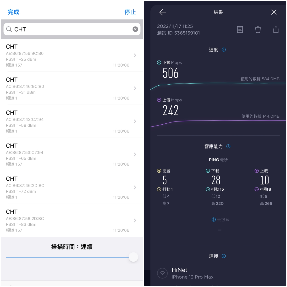 - 速度測試:下載 506Mbps、上傳 242Mbps