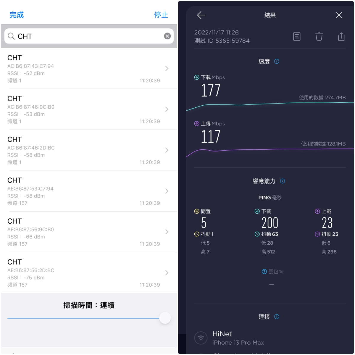 - 速度測試:下載 177Mbps、上傳 117Mbps