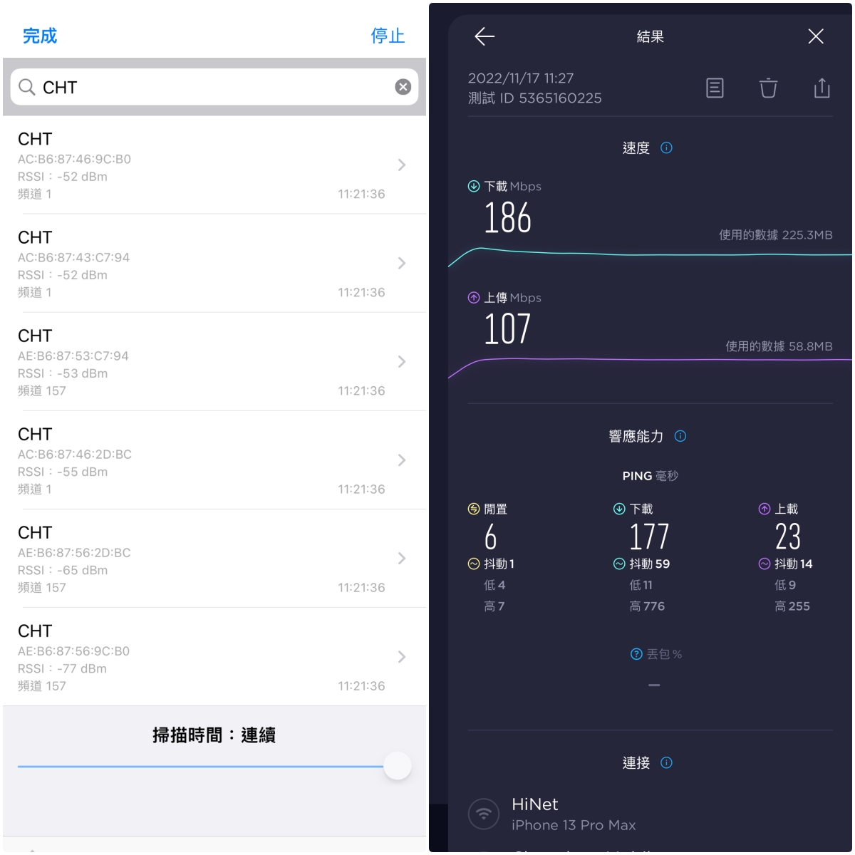- 速度測試:下載 186Mbps、上傳 107Mbps