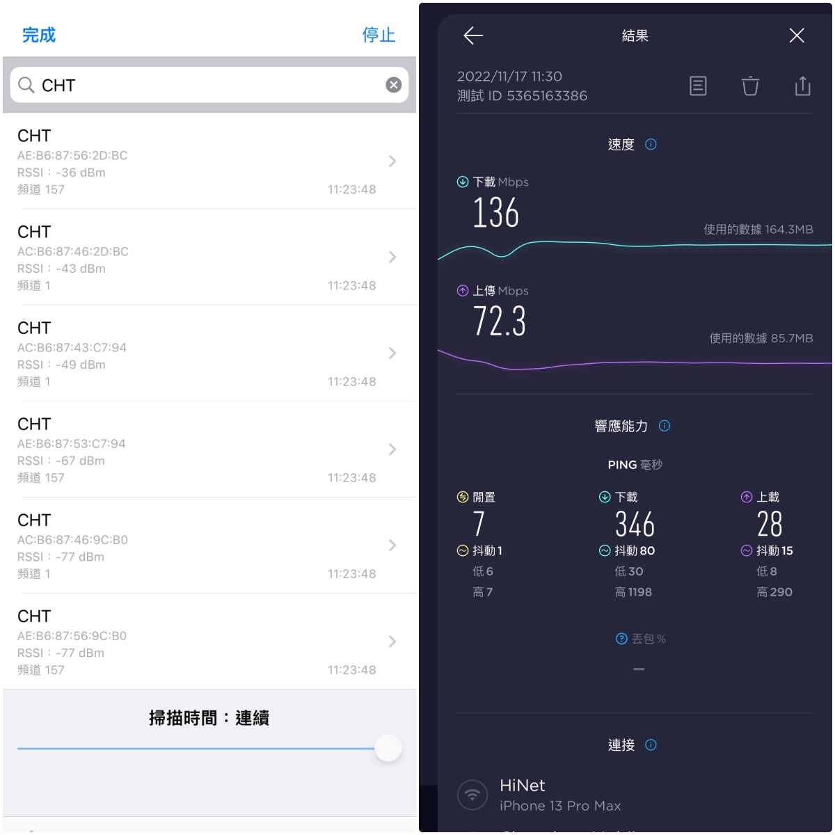 - 速度測試:下載 136Mbps、上傳 72Mbps