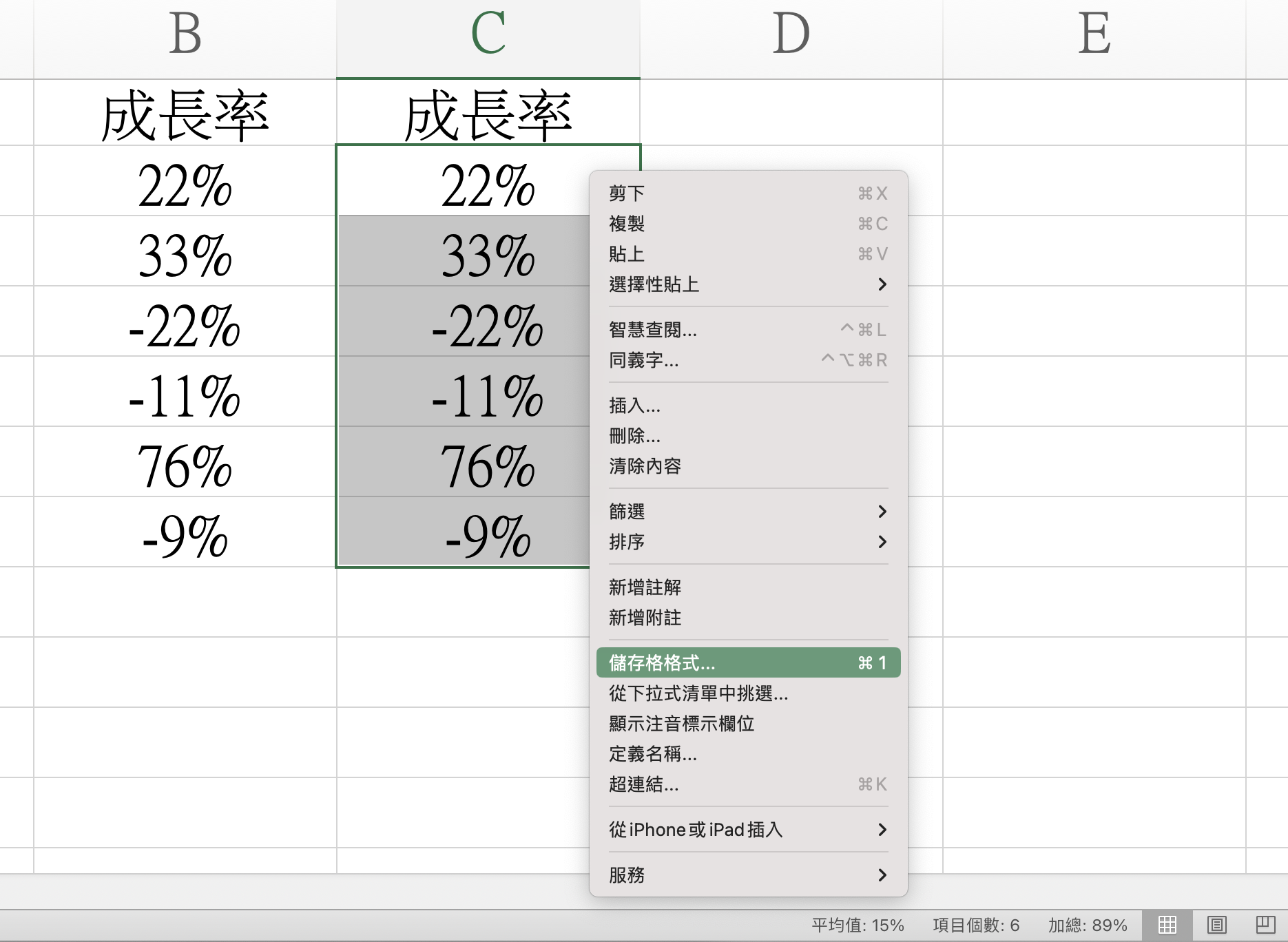 首先,要弄出上面那樣的畫面,並不是自己一個個打上去的,如果你真的是一個個修改,我也是服了你,因為有更快的做法,先將要修改的範圍全選起來後,右鍵進入「儲存格格式」。