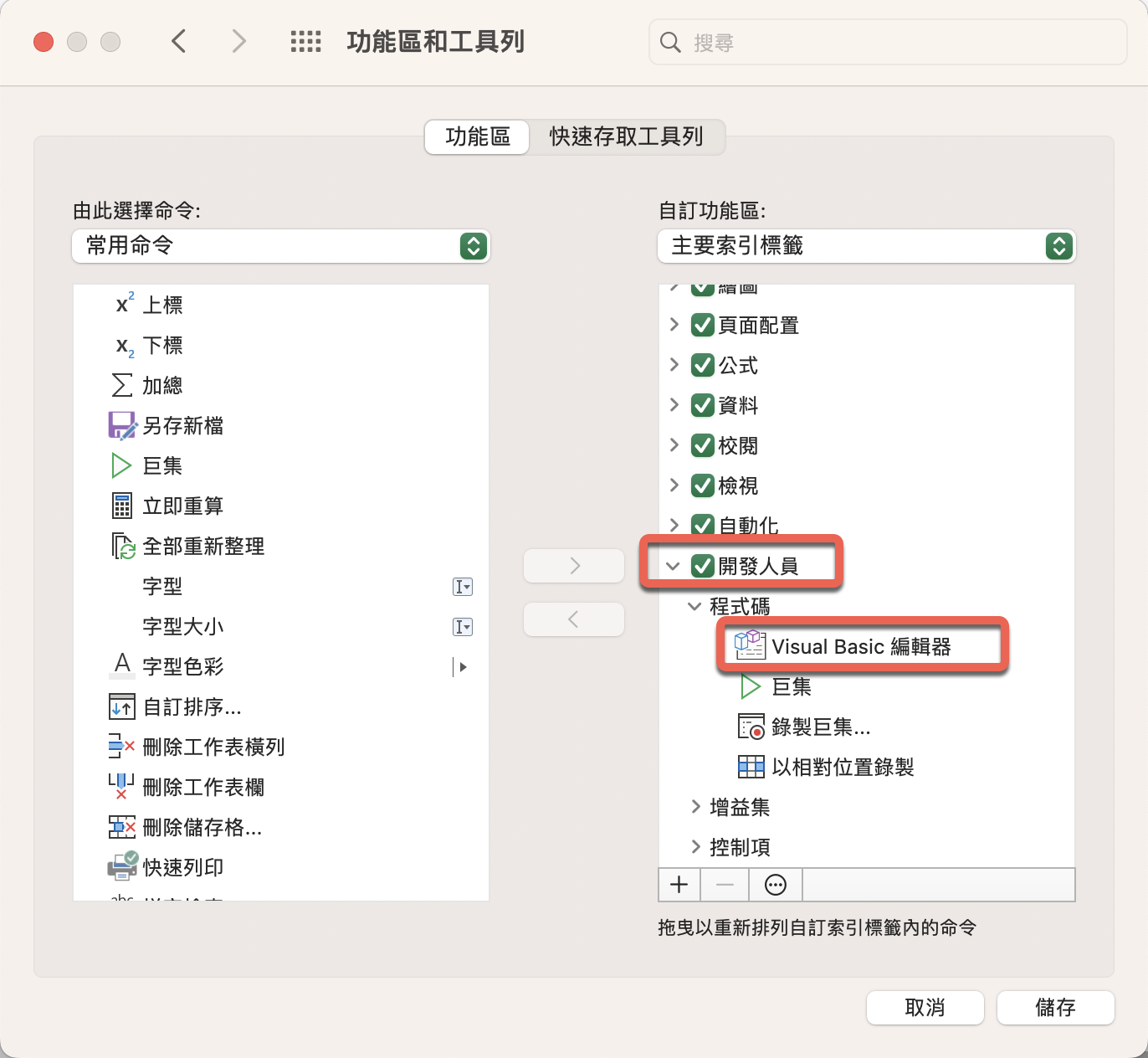 這樣就搞定了,並不是 macOS 沒有 VBA,只是預設要自己手動打開而已。