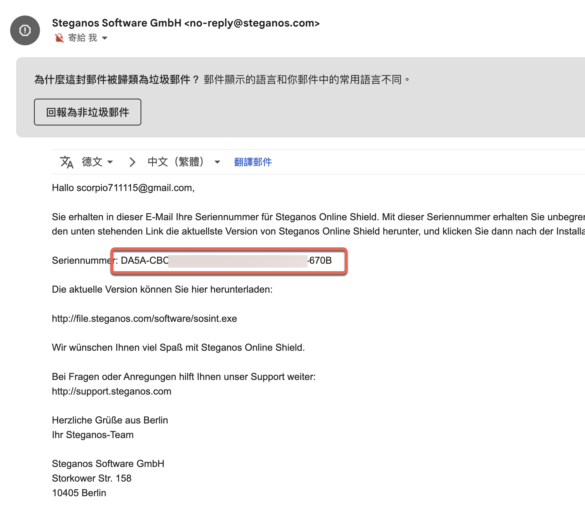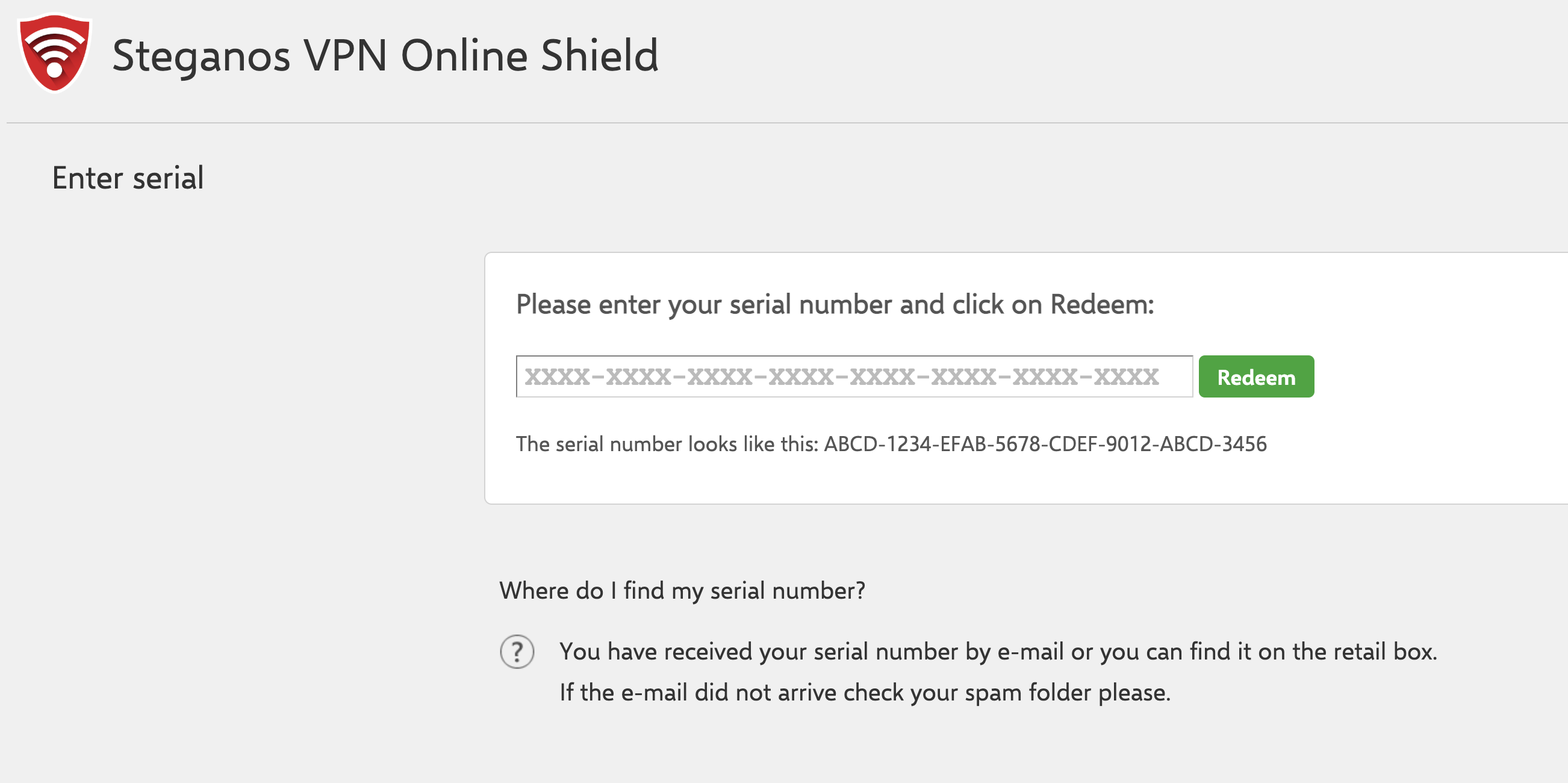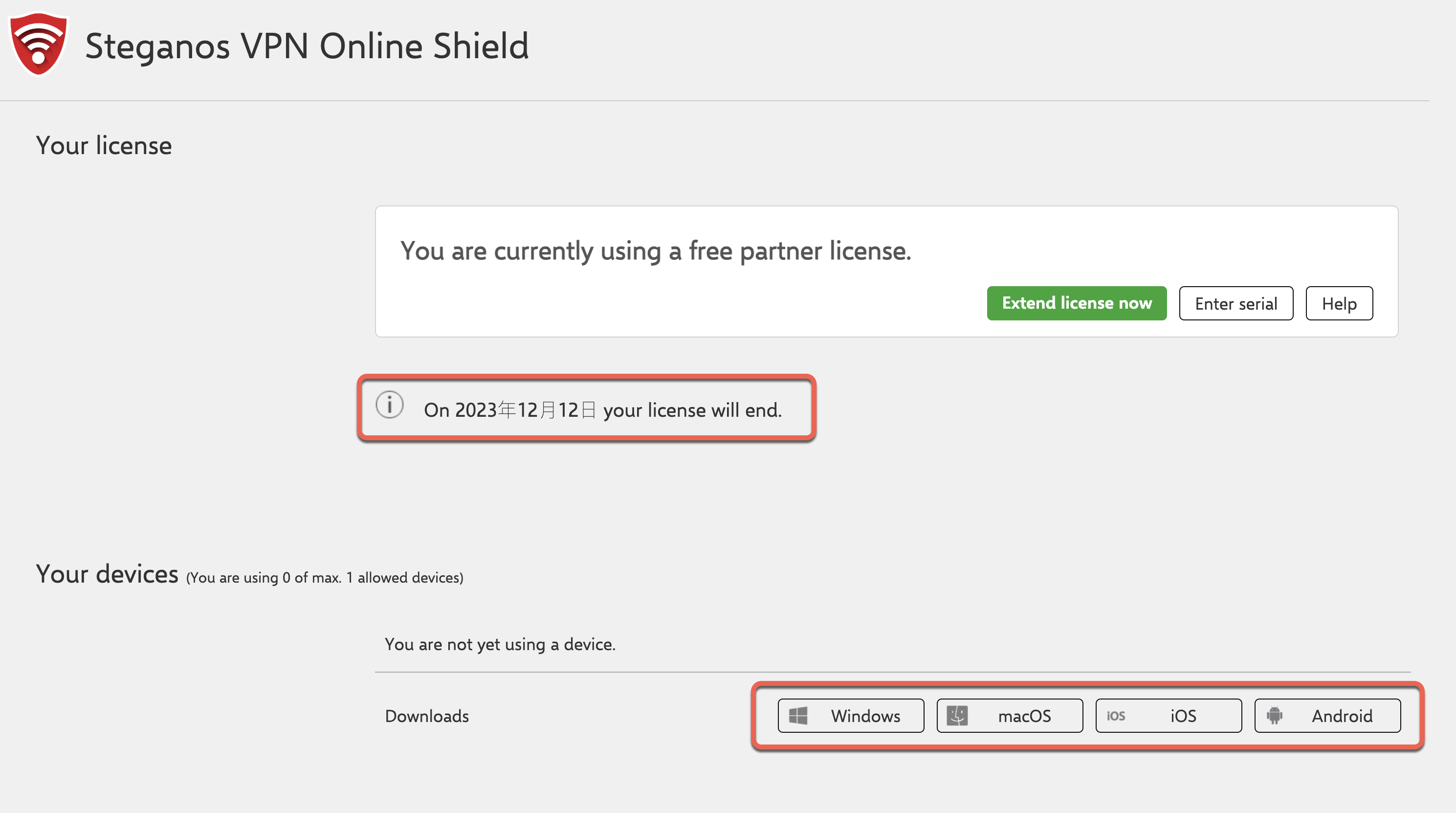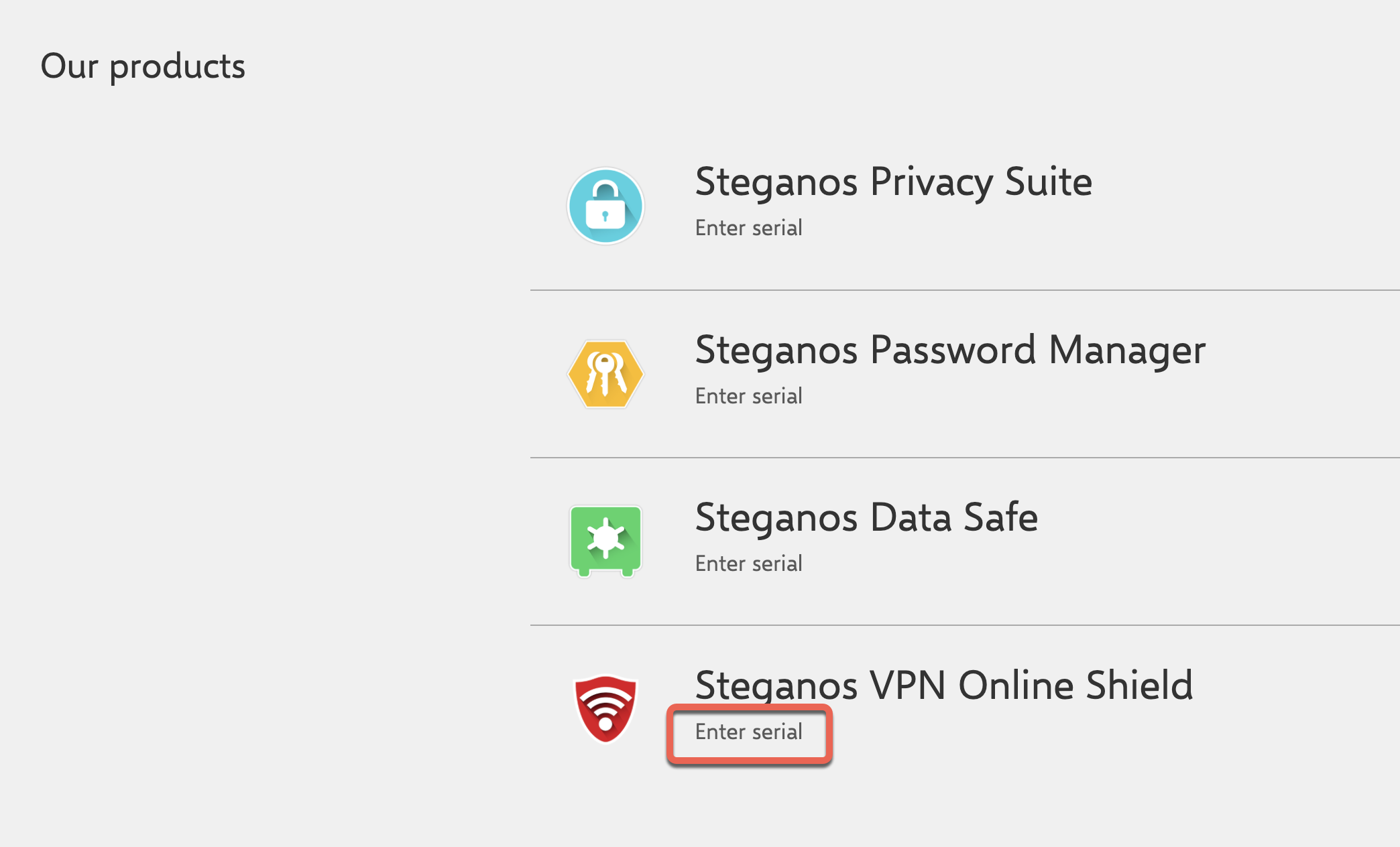 完成註冊後登入,找到最下方的 Steganos VPN online Shield 點擊 Enter Serial。
