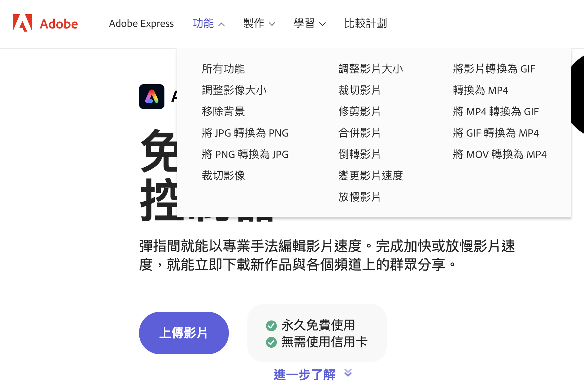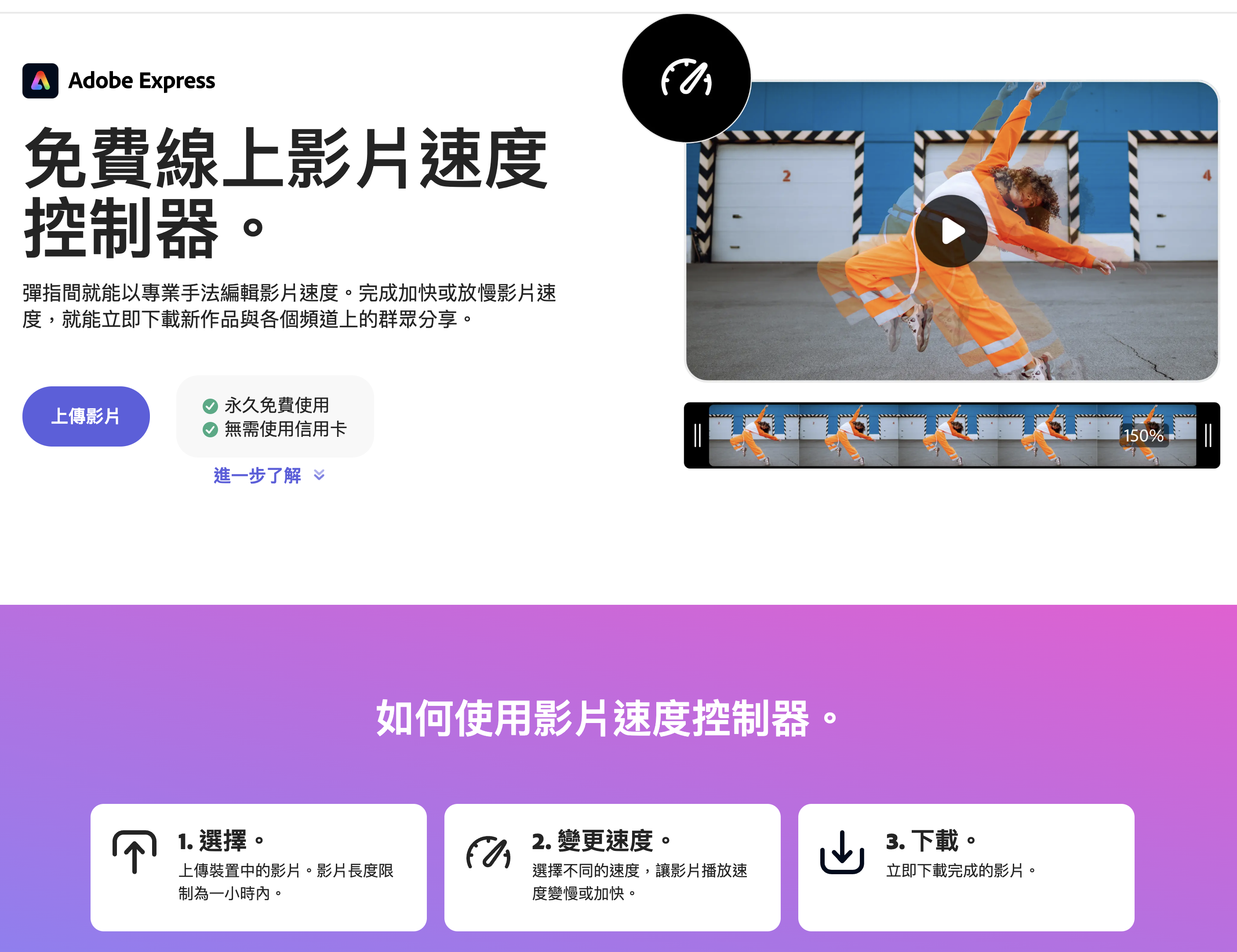 網站:https://www.adobe.com/tw/express/feature/video/change-speed/controller