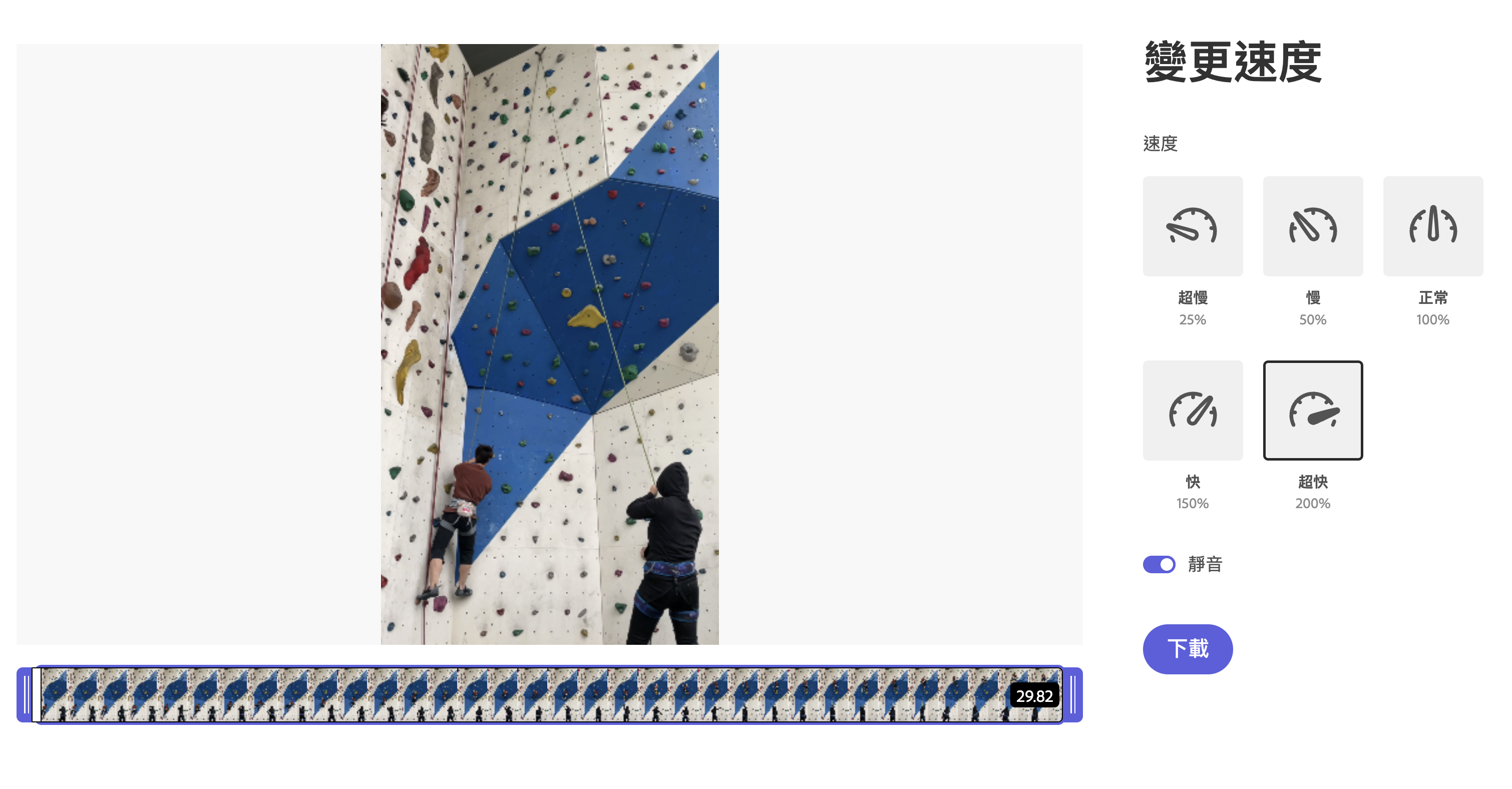 等影片處理完後就可以下載來看看,如果不想要有加速或放慢後的奇怪聲音,那就順便勾個靜音就好。
