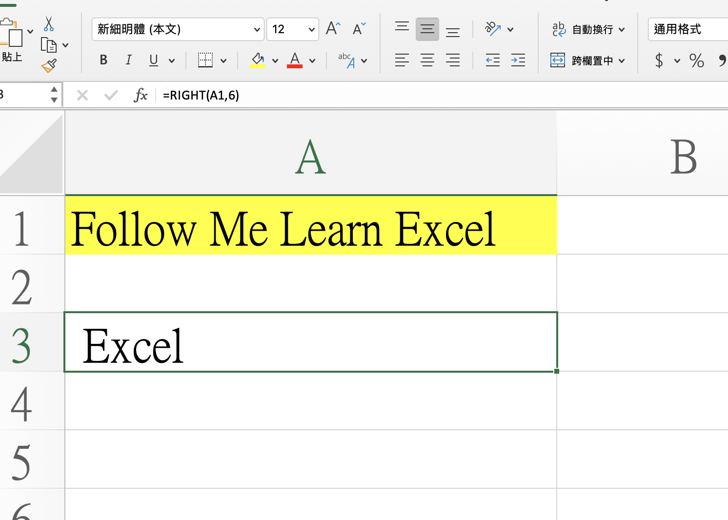直接從字串中最右邊開始取出 6 個字元,所以獲得 Excel,非常簡單,就是剛剛 LEFT 的相反而已。