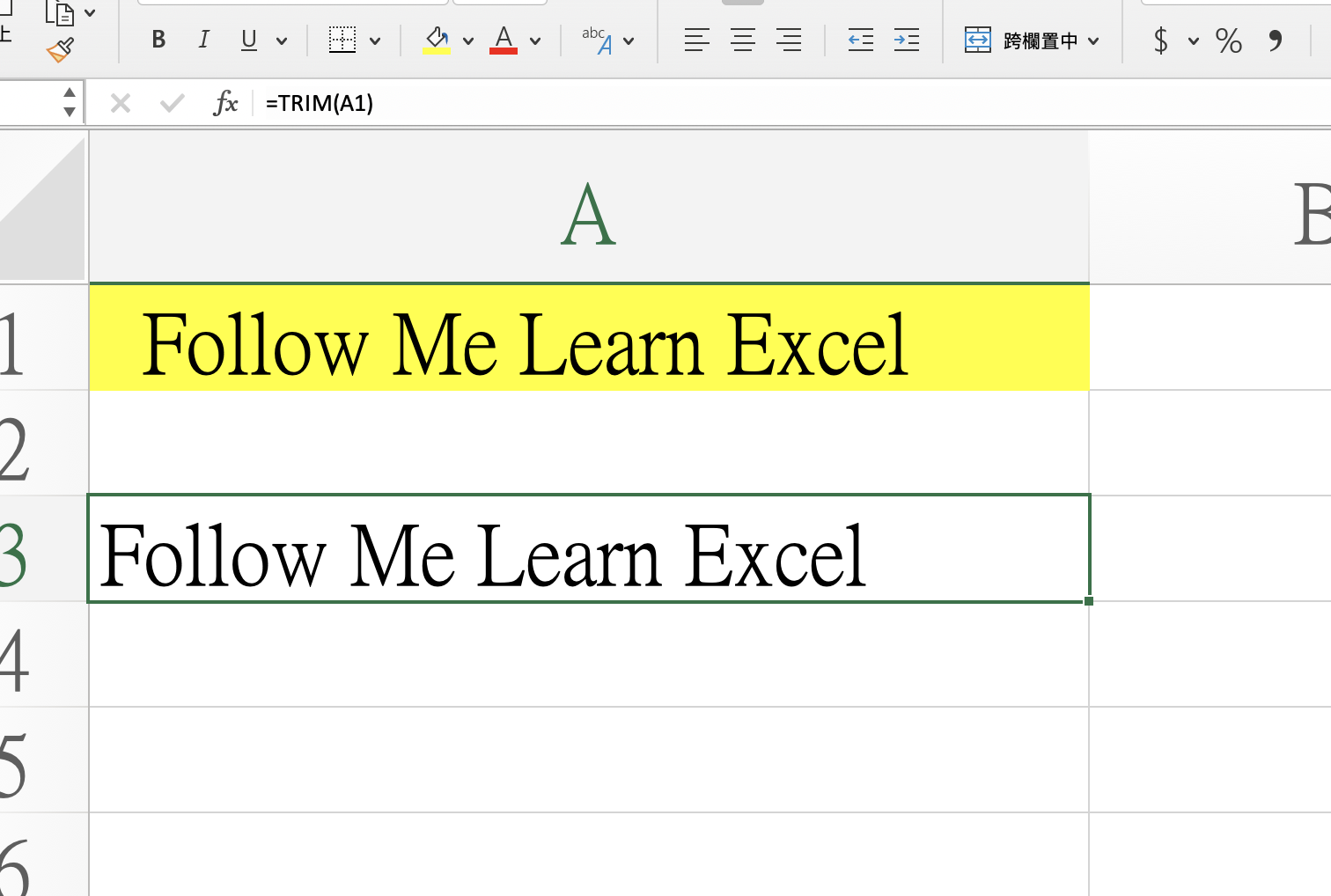 這移除的空格如同解說的一樣,只移除前後的空格,中間不論有多少空格都不會受影響哦。