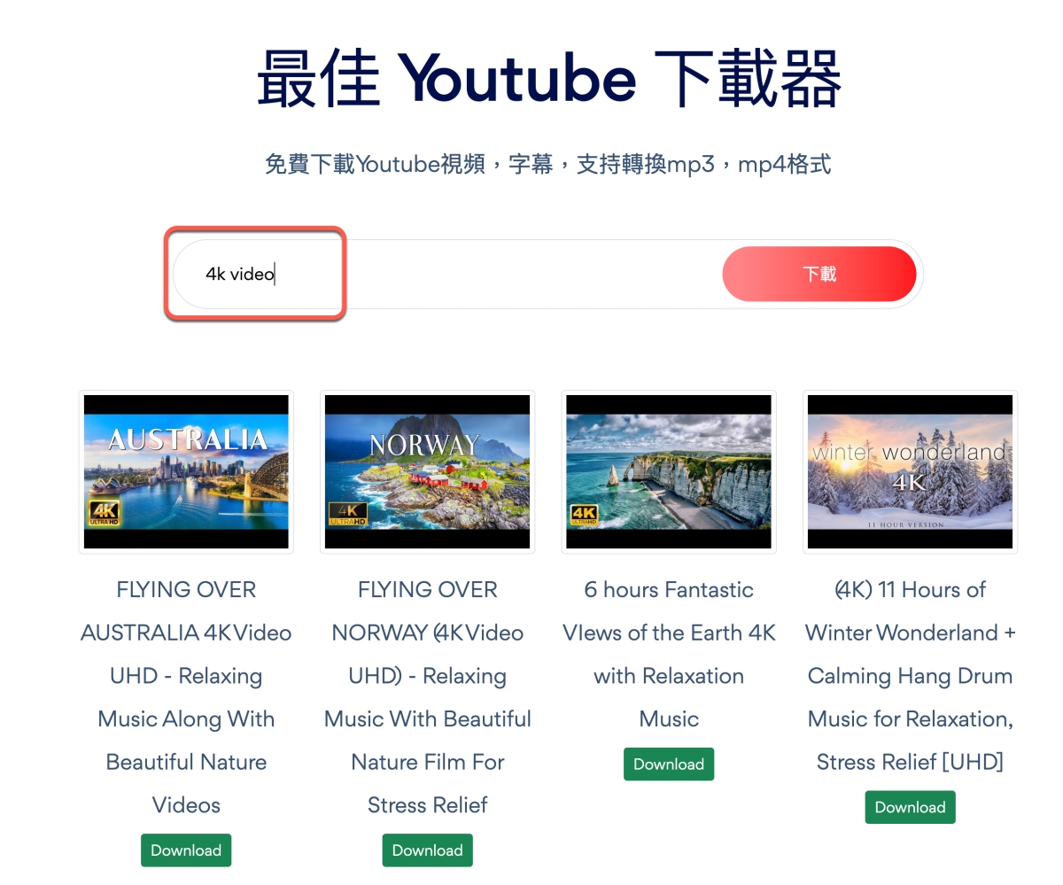 比如我搜尋 4K Video,然後先來試看看能不能下載 4K 的影片。