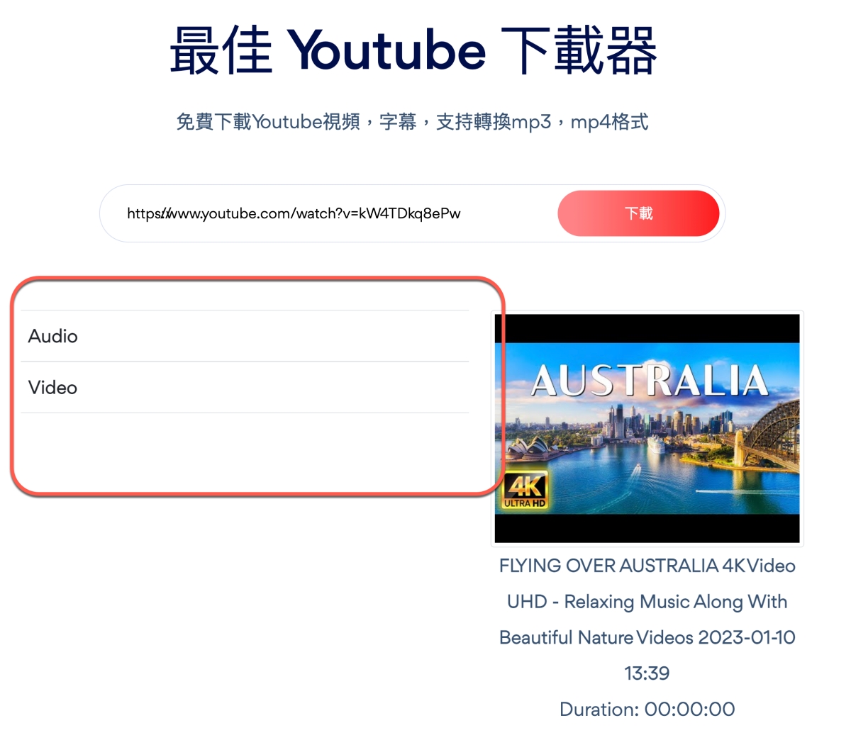 我就改成試試 1080p 的檔案,全都沒有問題,沒有遇到不能抓取的,格式分別有 MP3 跟 MP4 二種,看你是要下載成影像還是音樂。