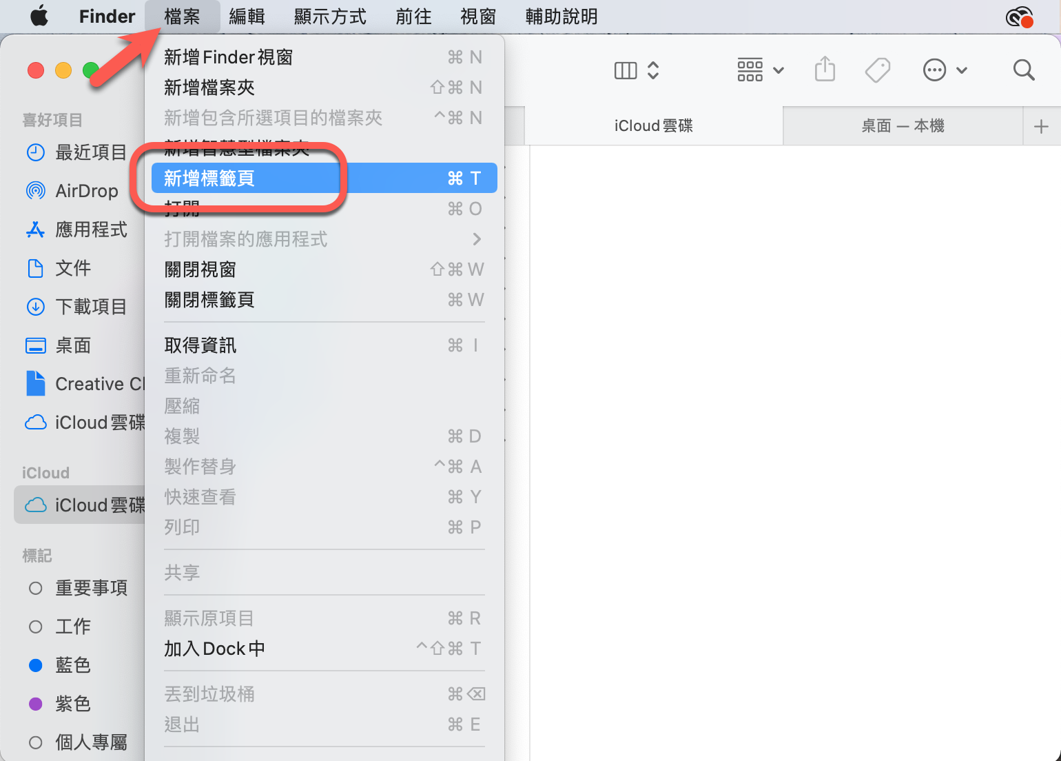 在 Windows 作業系統中,檔案總管一開始也沒有這樣的功能,後來也有了,而在 macOS 裡可以做到,Finder 如果想要新增標籤頁,可以在上方的檔案 > 新增標籤頁,不過這太常用到,建議大家記住快捷組合鍵