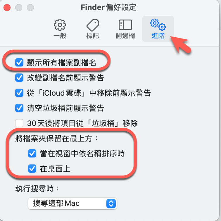 最後一個想分享的必要設定,就是讓資料夾自動排列在上方,這對於檔案管理上是會比較直觀且方便的,不知道為什麼 macOS 預設是關閉這個選項。