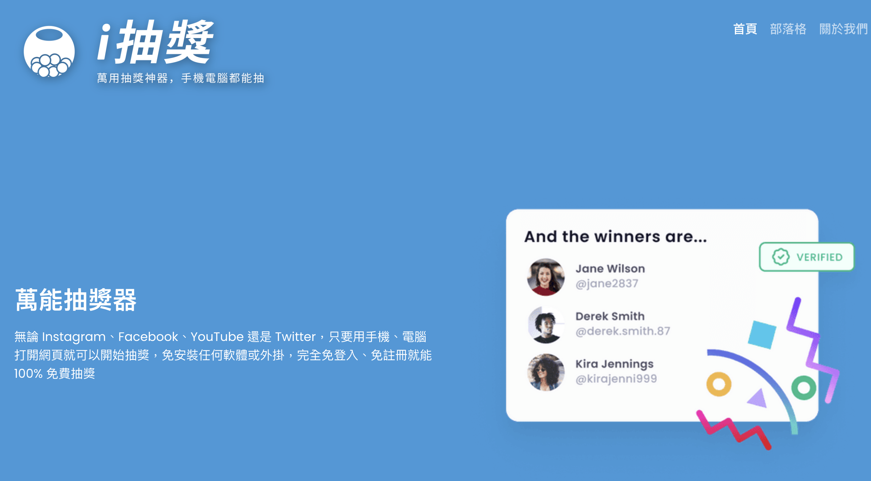 社群經營在早期很多都是透過抽獎操作來達成互動及粉絲的成長,雖然現在這樣做比較少,但偶而需要回饋粉絲或是促進互動率時,抽點小獎還是不可避免的,大多的社群抽獎功能都是支援 Facebook,而且是需要註冊登入或者收費,今天要分享的這款社群萬用的抽獎神器 i 抽獎,不需要註冊,免登入就可以使用,目前支援 Facebook、Instagram、YouTube、Twitter,對於有在經營社群的人是一大幫助,有需要的快來用看看吧。
