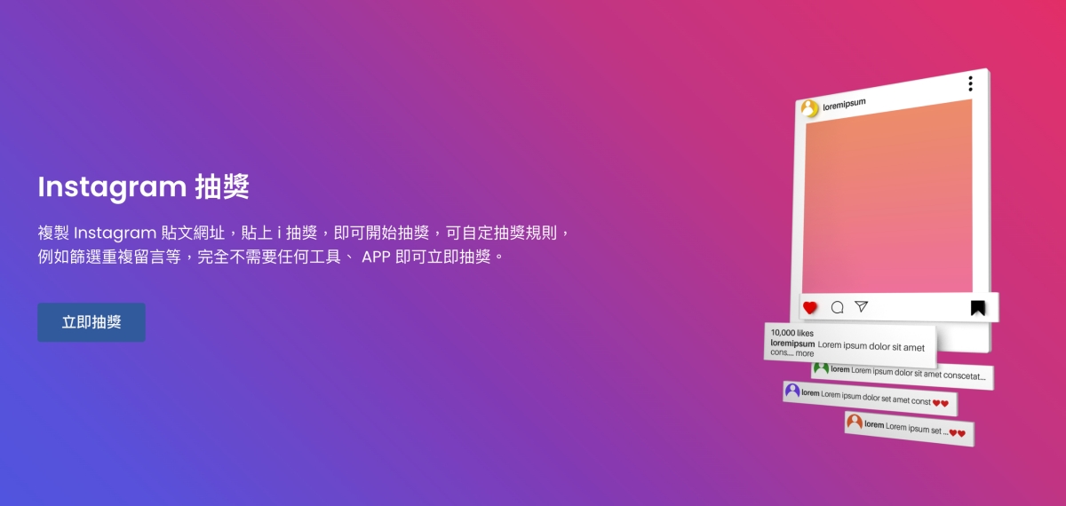 其它還有 Instagram 抽獎,只要貼文是公開的就能使用,沒有其它的限制存在。