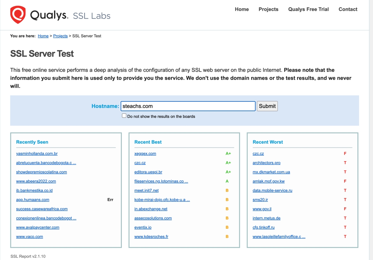 接下來透過 SSL Labs 就更細了,同樣輸入網址後送出。