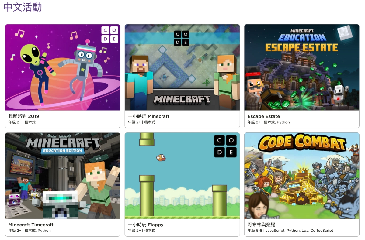 網站:https://hourofcode.com/ca/zh/learn