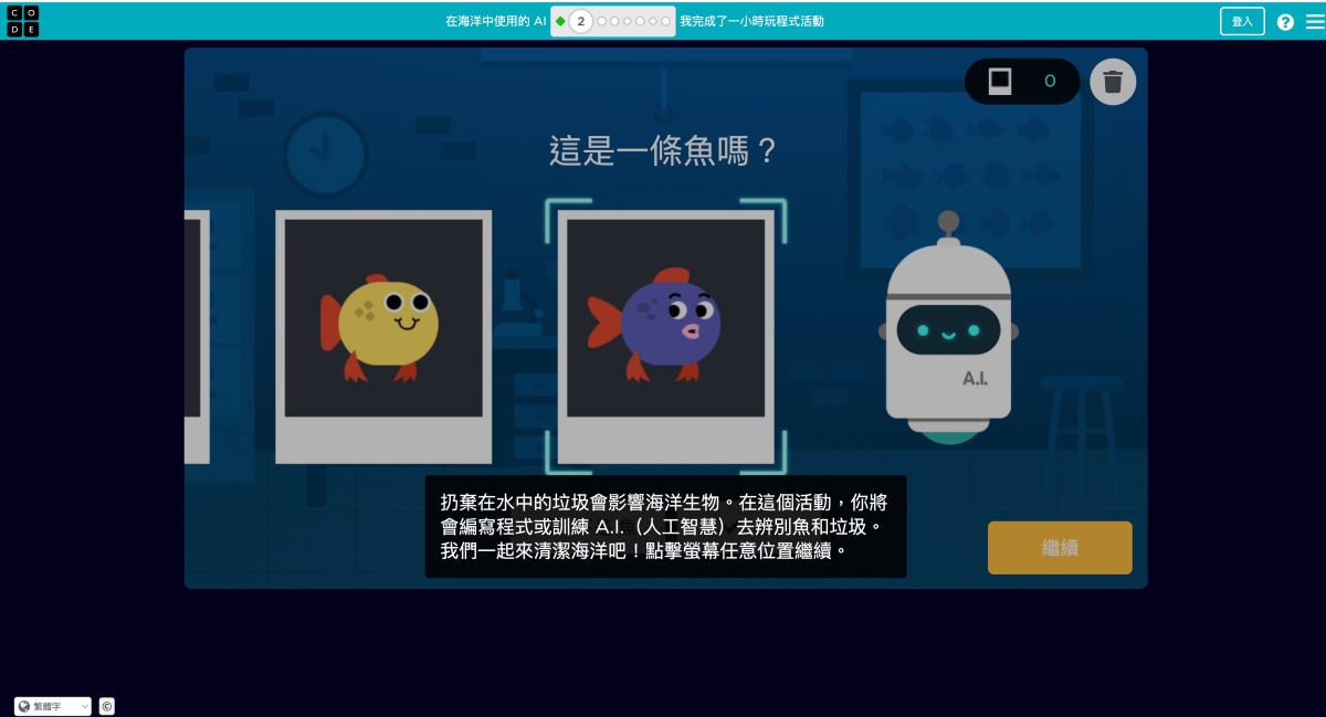 比如像這個保護海洋的人工智慧,點擊後,再點擊開始就可以進入學習。