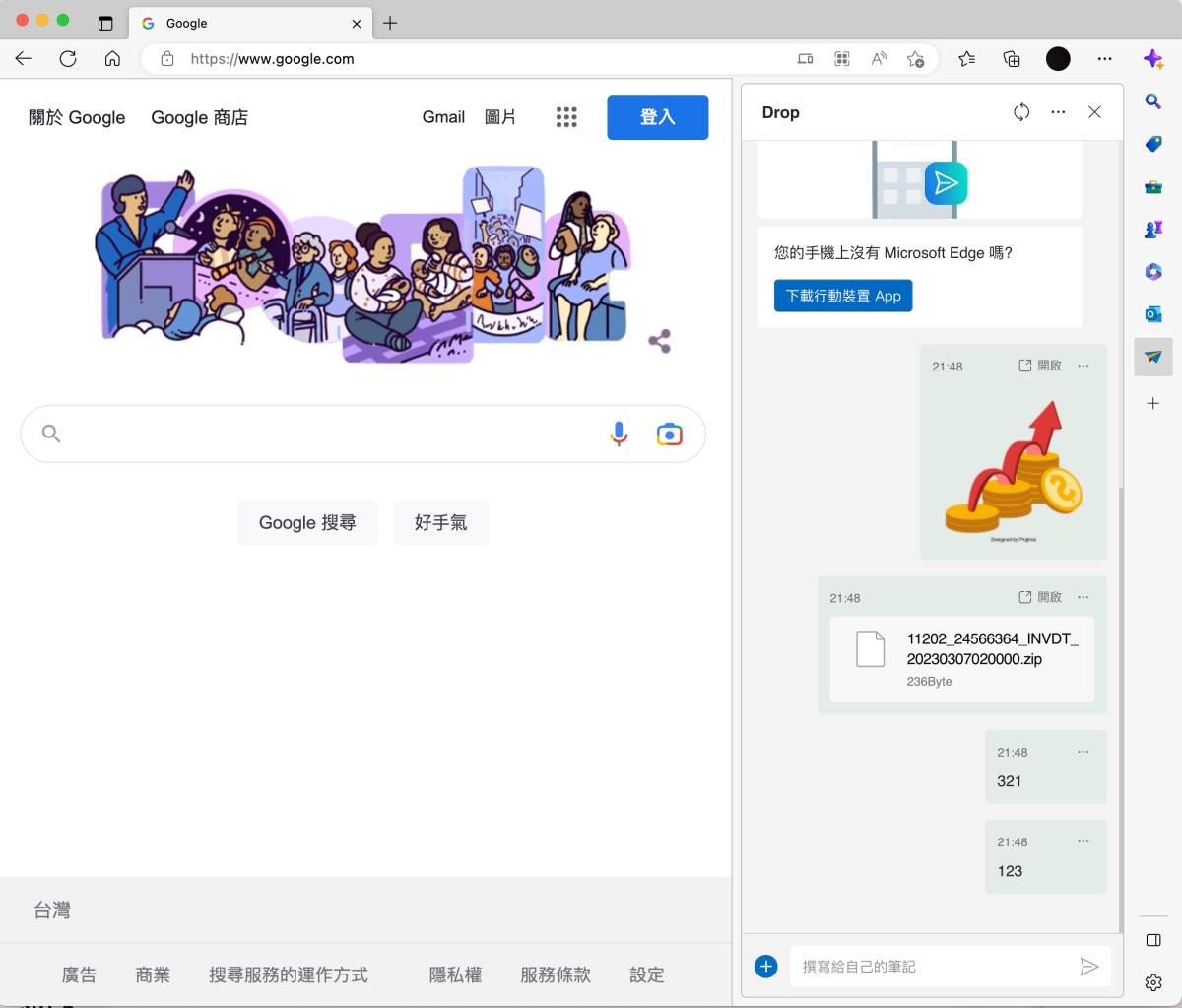 Edge 瀏覽器自從改用 Chromium 核心後,在我心中其實他就是變成最好用的瀏覽器,只差在他不是綁定 Google 帳號使用,而前陣子 Edge 在更新版號 110 後就增加了一個實用的功能叫做 Drop,Edge 瀏覽器的 Drop 功能是以一種方便的方式,可以將檔案或圖片從電腦拖曳至瀏覽器中,直接進行上傳或下載操作。使用者只需將檔案或圖片從電腦拖曳至瀏覽器的特定區域,就能夠輕鬆地上傳到網站或下載到電腦中。