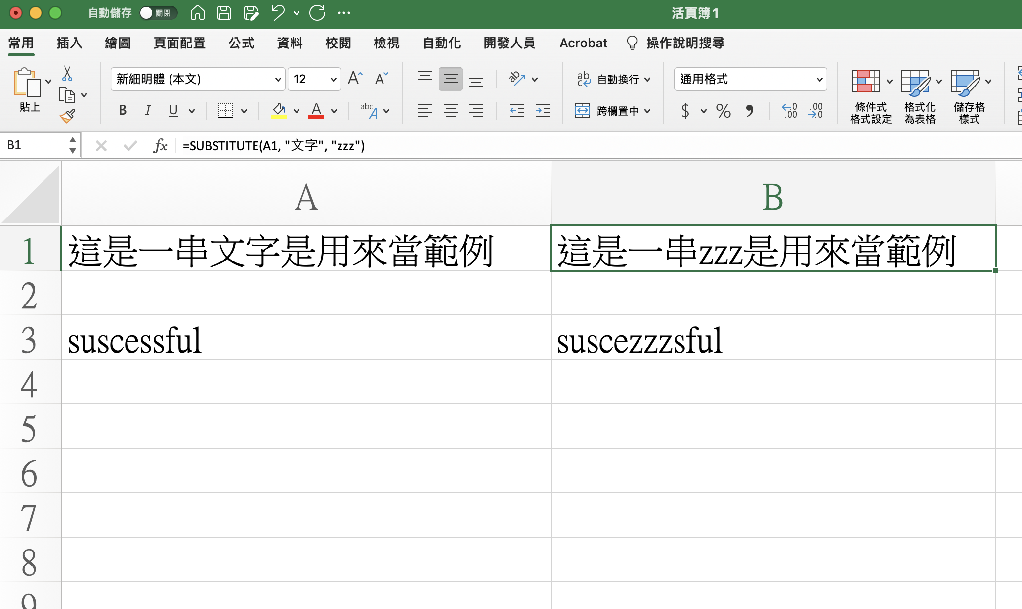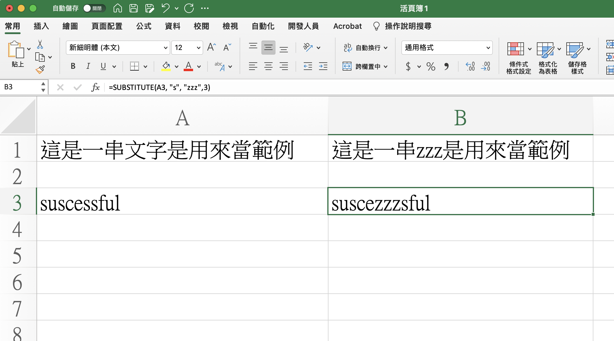 SUBSTITUTE 函數使用範例一: