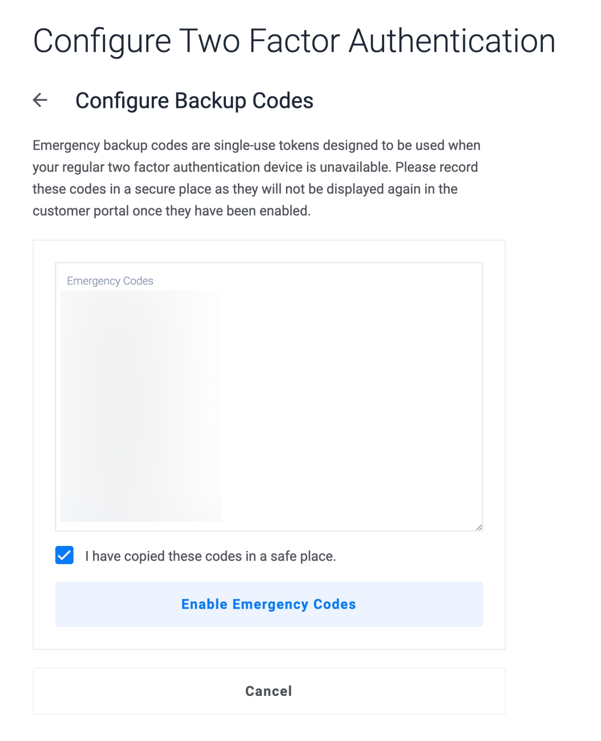 再來就會有一堆備用代碼,將他複製後記下來吧,下方點撃「Enable Emergency Codes」,這樣就完成二階段驗證。