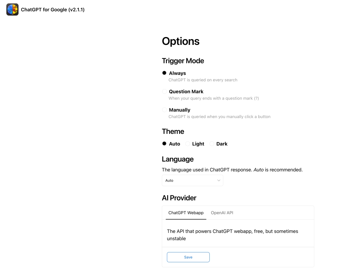如果你想要瀏覽器上更方便更快的和 ChatGPT 對話,那麼 ChatGPT for Google 擴充程式絕對是目前最佳的選擇。這個擴充程式目前支援 Chrome、Firefox 及 Edge,可以直接在 Google 搜尋同時提供 ChatGPT 的結果,平常也能直接在瀏覽器點開就進行對話,非常方便,不需要再額外開頁面,使用這個擴充套件也不需要另外串 API,快試看看吧。