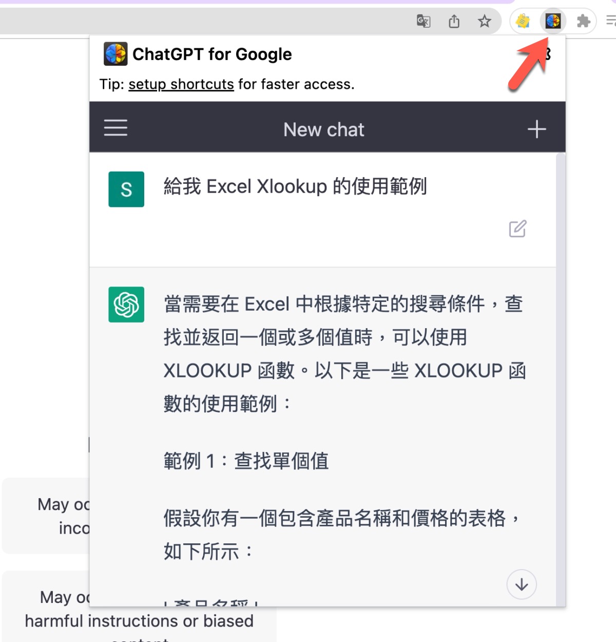 之後有問題想要問 ChatGPT,就可以直接在右上角直接詢問,不用再開網頁了。