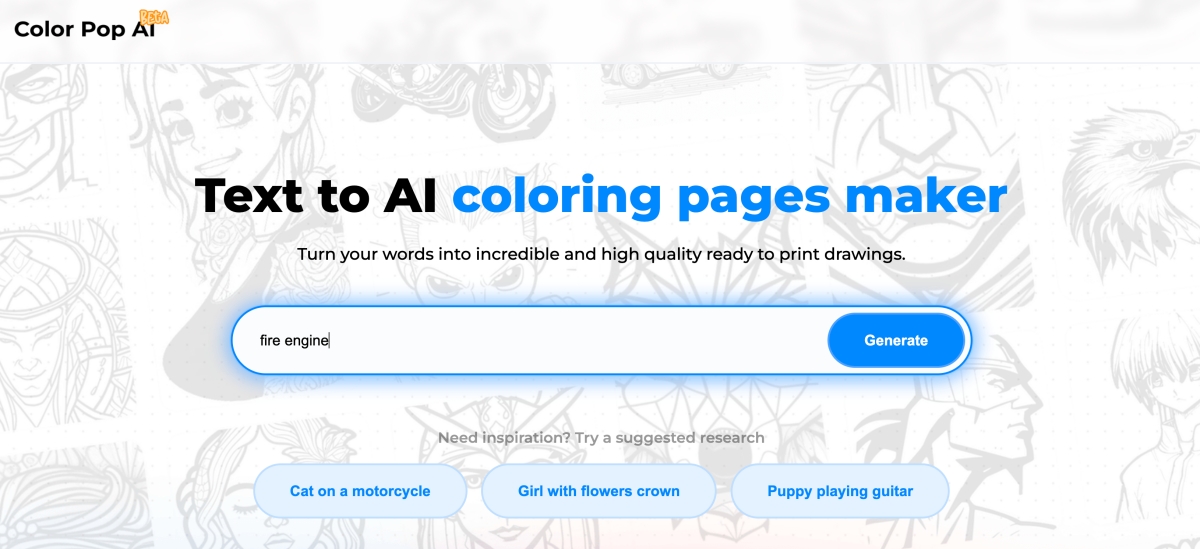 AI 的運用愈來愈廣泛,除了像 ChatGPT、Bing AI 這類文字型服務,還有像是文字轉圖像,文字轉影像等,而針對小朋友的需求,現在也有了文字轉著色圖,今天要分享的這個網站叫做 Color Pop AI,只要用文字簡單描述你想要產生的著色圖內容,幾秒後就可以幫你產出,不論小朋友想要畫什麼,都不用再東找西找了,到這裡產生就搞定,家裡愛畫畫的小朋友就用這個來搞定吧!