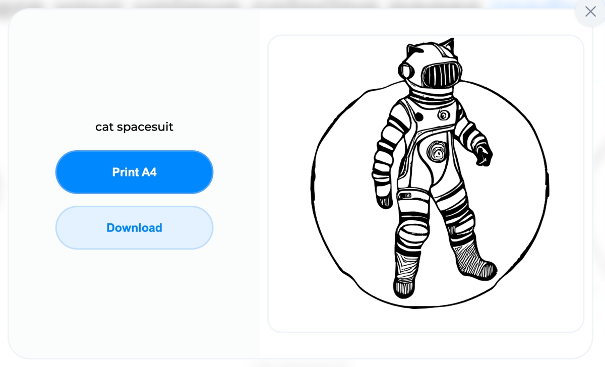當你點擊圖片時,會有二個選項,以 A4 的大小進行列印或是可以下載,不過我想一般應該直接列印就可以了,小朋友大概在旁邊等不急了。