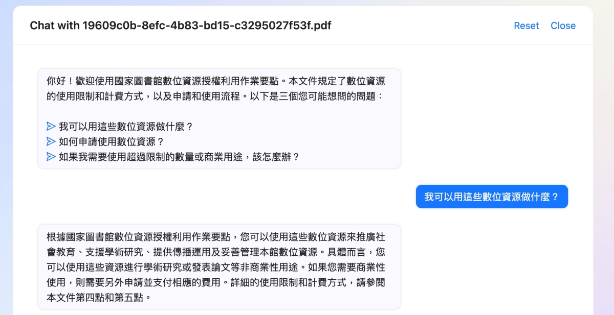 上傳後他就會先幫你整理你可能會想要問的問題,你可以按照這些建議提問,或者發問自己想要知道的部份就好。