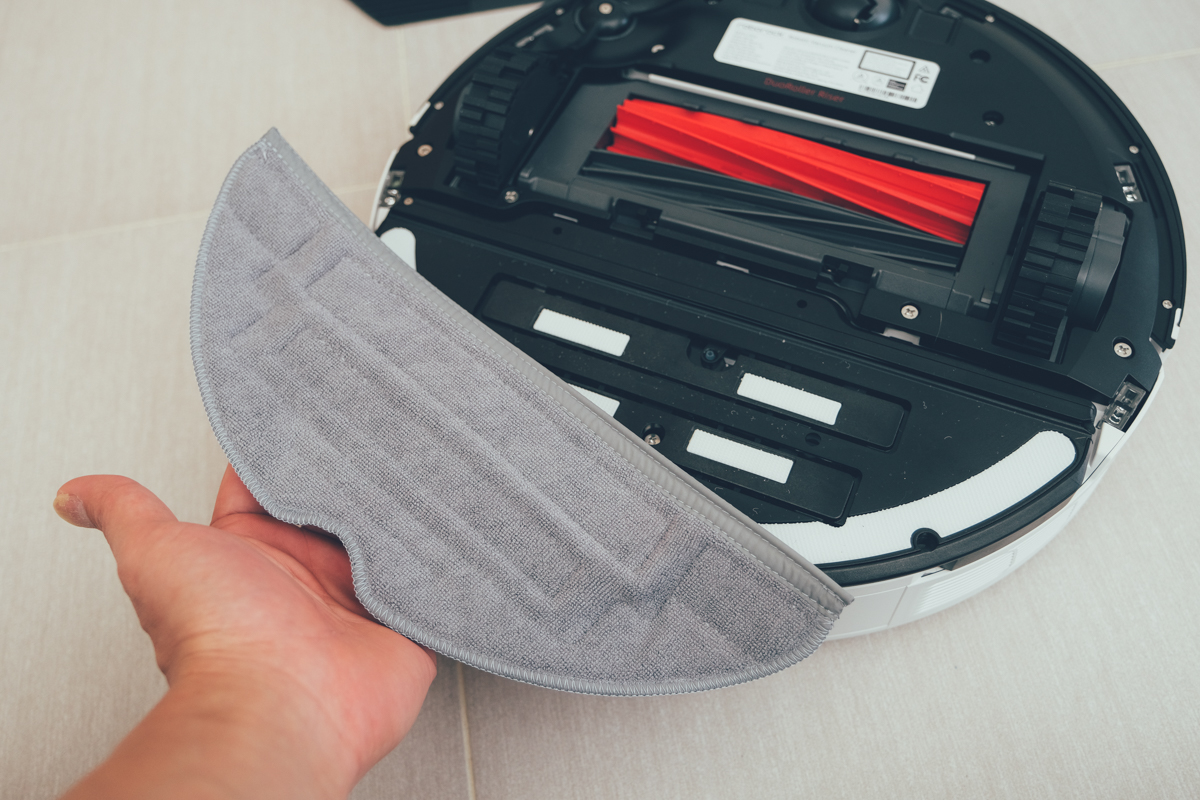 拖布的部份可以直接拆卸清洗,不過按照阿湯使用一週下來的感受,透過底座的自動清洗拖布加45度C雙熱風烘乾,基本上用了一週下來,抹布還是很乾淨,而且沒有異味,這一點真的太讓我驚艷,除非你用來掃了很髒的地方,可能就還是拆下來洗一洗,否則我想在一般狀況使用下,我自己估計可以 2~3 週再拆卸一次來清洗就好。