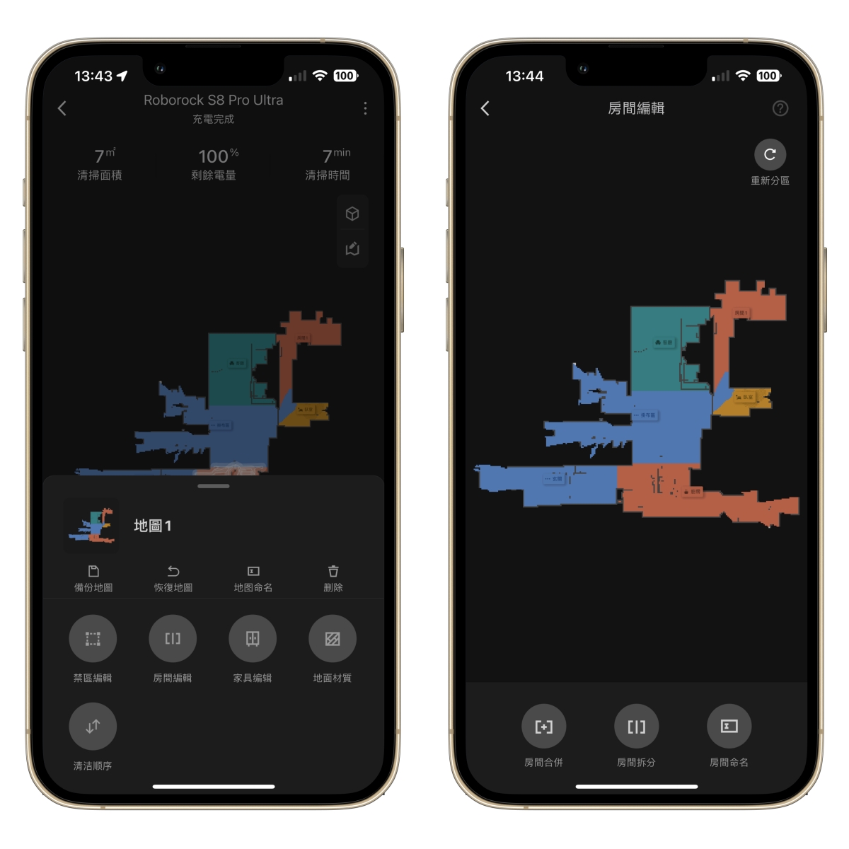 App 其它的部份還有像是地圖編輯,可以詳細的針對家中的環境分佈進行合併,拆分等,也能編輯既有的家具放入,讓掃地機經過時可以辨識的更好。