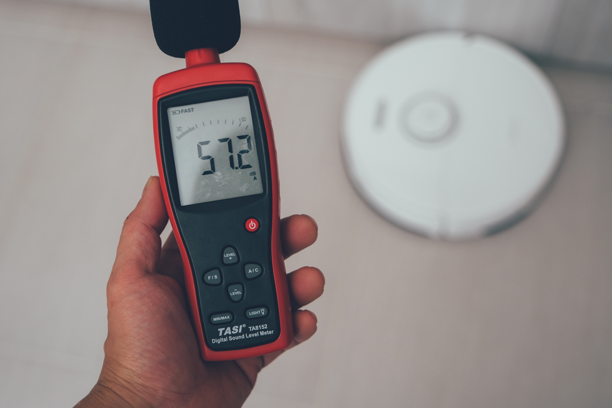 再來是純拖地的噪音值為 57.2dB,如果設定在半夜進行拖地,我覺得不在自己同一房間下,應該是聽不到的(比如你在臥房睡覺門關起來,掃地機在客廳拖地),實際體感大概等同安靜的辦公室吧。