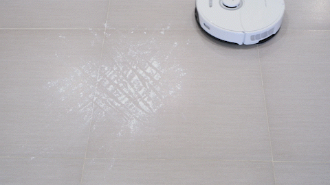 再來是很容易有殘留的粉狀物,我在地上均勻的灑了一些麵粉,然後來試看看,Z 字掃拖過去後全部被帶走,毫無懸念。