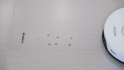 接下來就進入大家選擇掃地的重點了,就是清潔能力,我就簡單的測試二個,一個是很重的,一個是粉狀,而重物,一般只有放螺帽測試,我直接加了一個很薄的墊片,以及一個超長的螺絲,大家猜猜會不會成功?