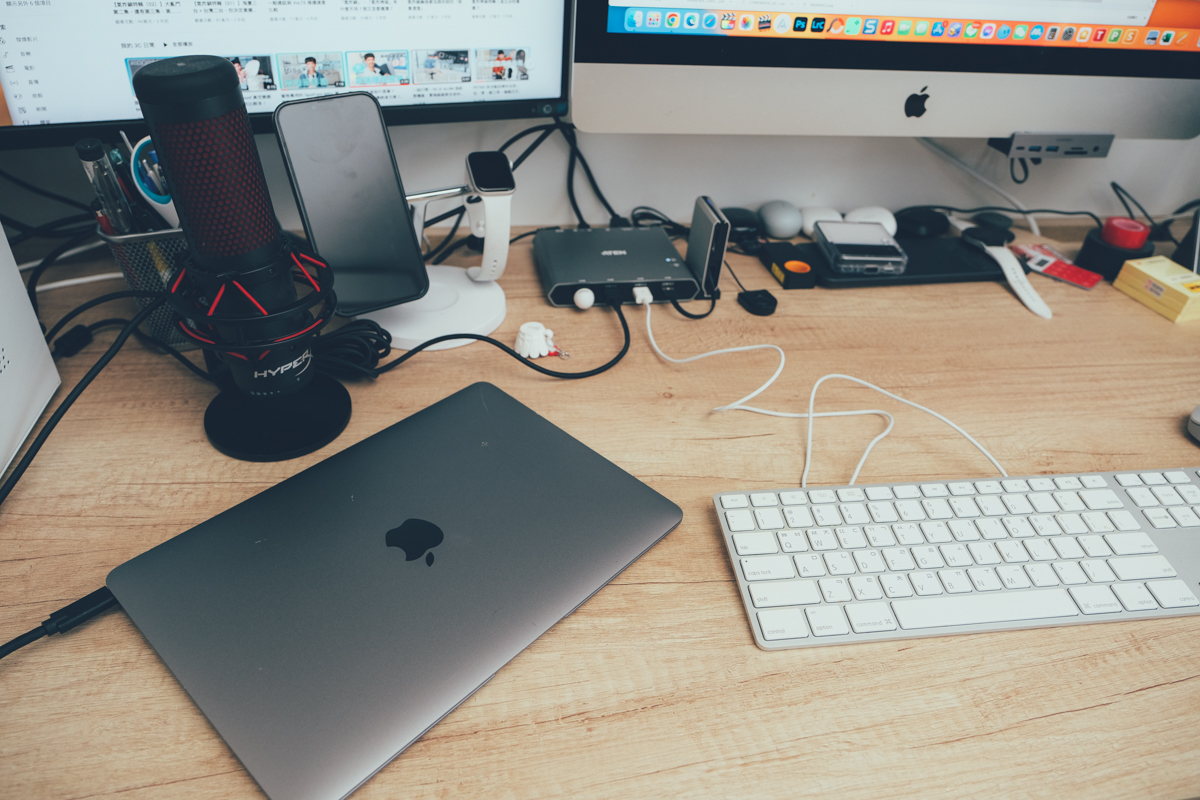 除了滑鼠我是用藍牙的以外,加上 KVM 後,我的桌面光是少了一組鍵盤,看起來就不一樣了,重點是以後切換真的有夠方便,只要按一下就可以決定要切換去 iMac 或 Windows 主機,不只是少了一組鍵盤節省空間,我各種週邊也不需要拔來拔去了。
