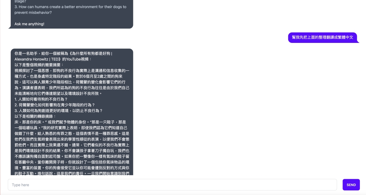 看完摘要,大概了解這部影片要做什麼時,就可以開始提問,它就會針對影片的內容來回答你,非常方便,對於吸收內容我認為是更快速且方便的,另一方面也能立刻知道這部影片對於你想要得到的內容是否有幫助。