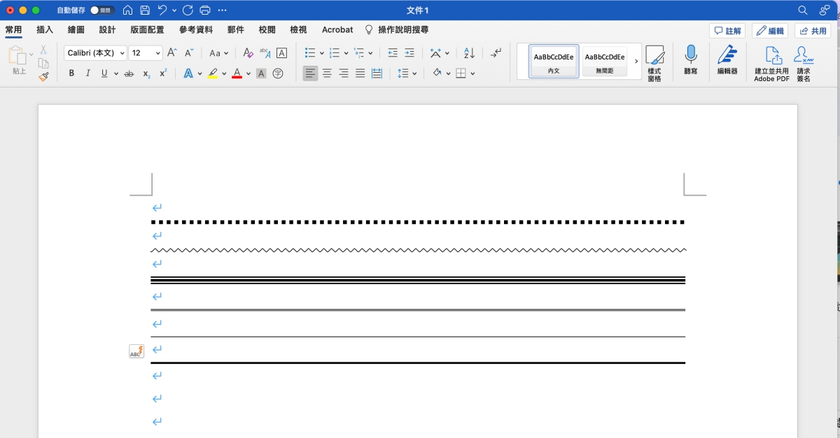 今天要分享的六種分隔線如下,除了網頁版 Word 不支援外,基本上各版本都支援,大家可以試看看,往下來看看分別的快捷鍵是什麼吧。