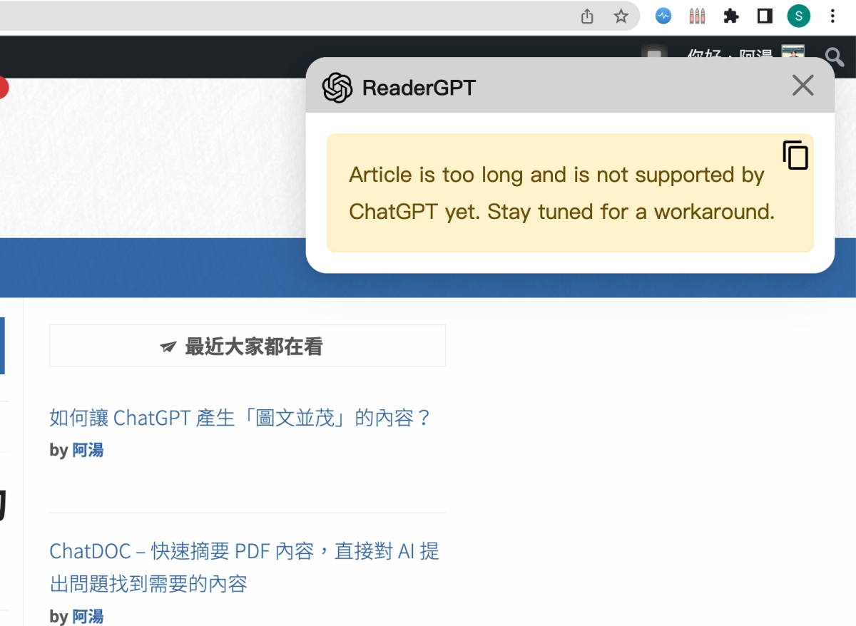 用 ReaderGPT 快速摘要內容