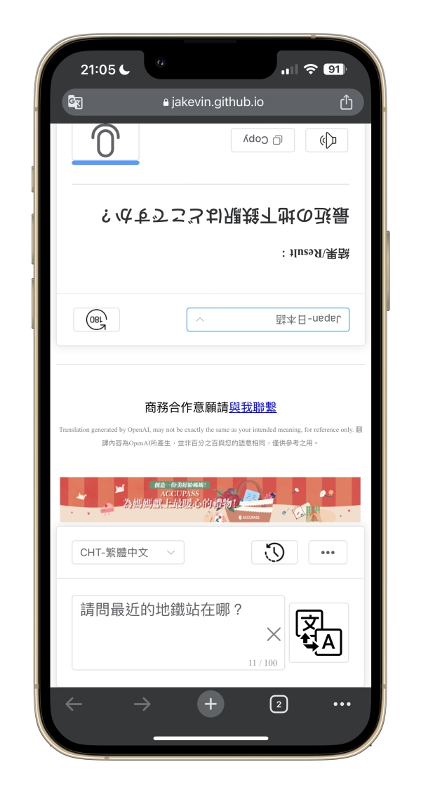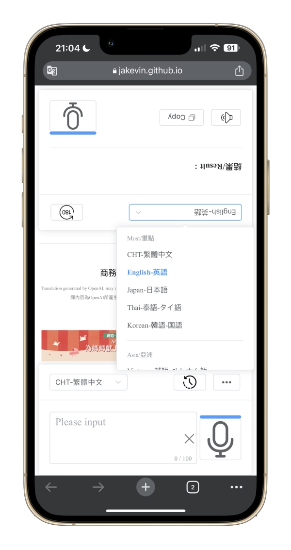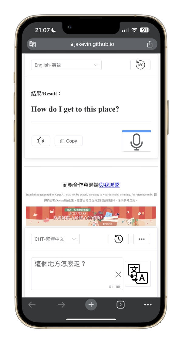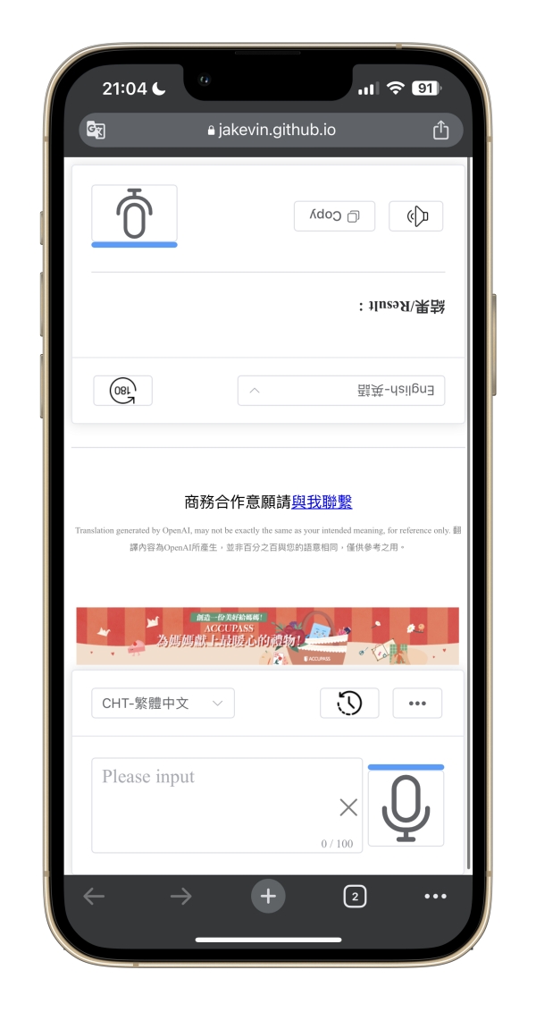網站:https://jakevin.github.io/azure-tts/tanslator/進入網頁後就可以直接使用,而且介面是一正一反,剛好是給對方看也很方便。
