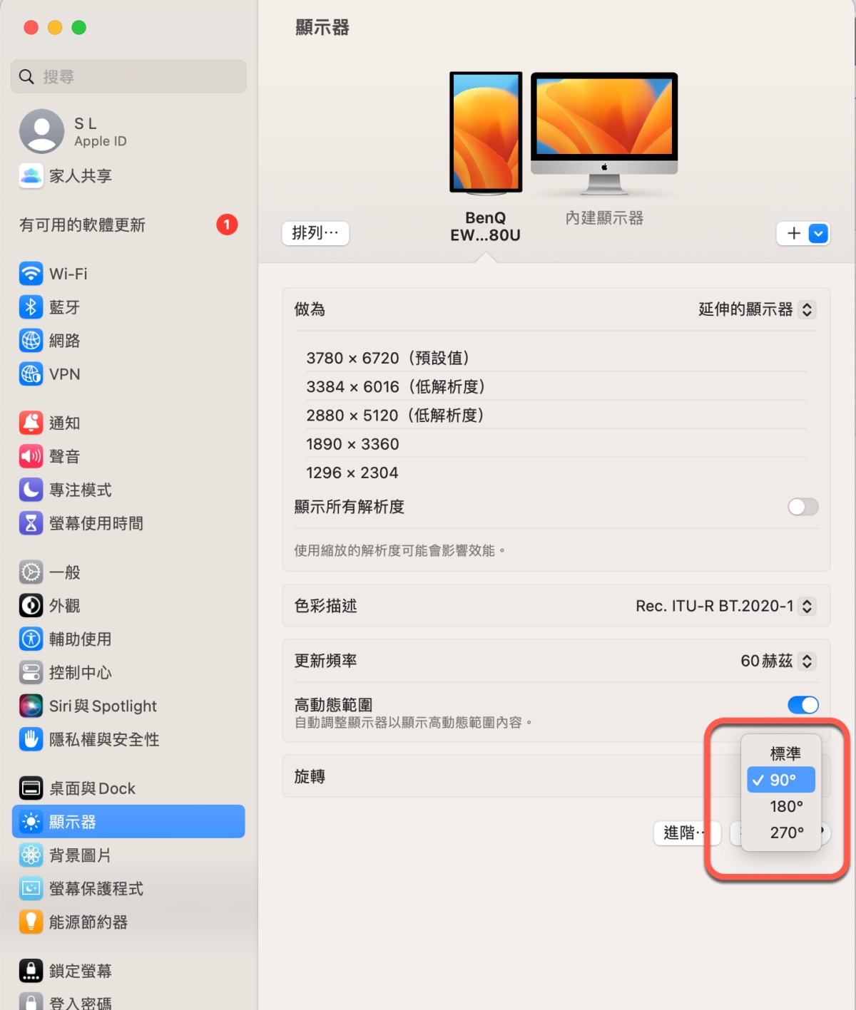 MAC 系統設定螢幕轉向的方式