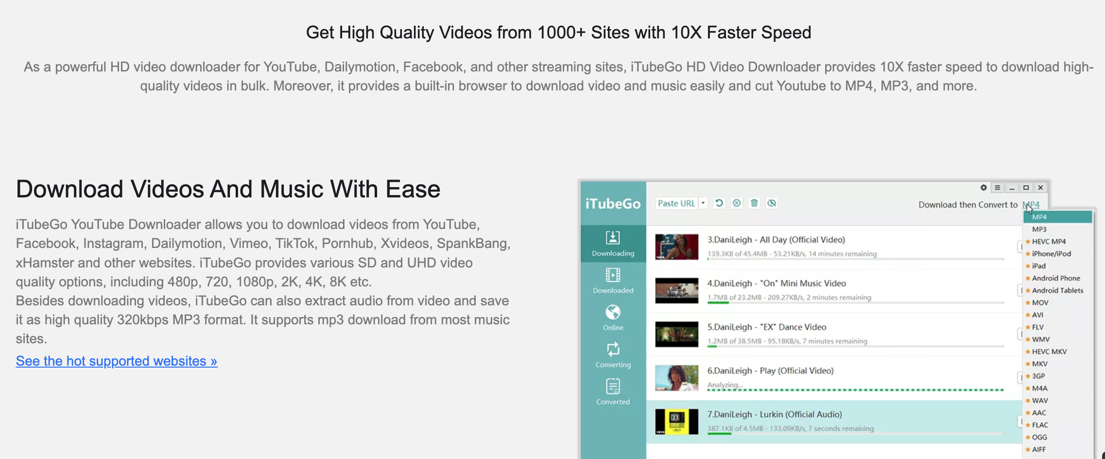 再次提醒大家,iTubeGo 支援的網站是超過 1000 個以上,不是只能用在 YouTube 影音,常用的像是 IG、Facebook 等,一樣都是支援的,當然還有很多線上的謎片網站,大家也是可以試看看的,透過 iTubeGo 下載速度快,而且想要轉檔也能直接在這裡完成,是一款非常好手上又專業、功能完善的影音下載工具。