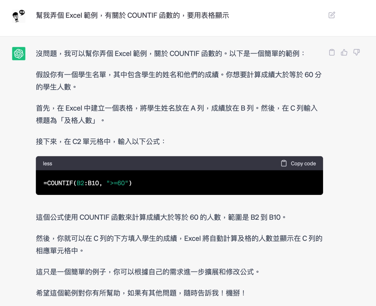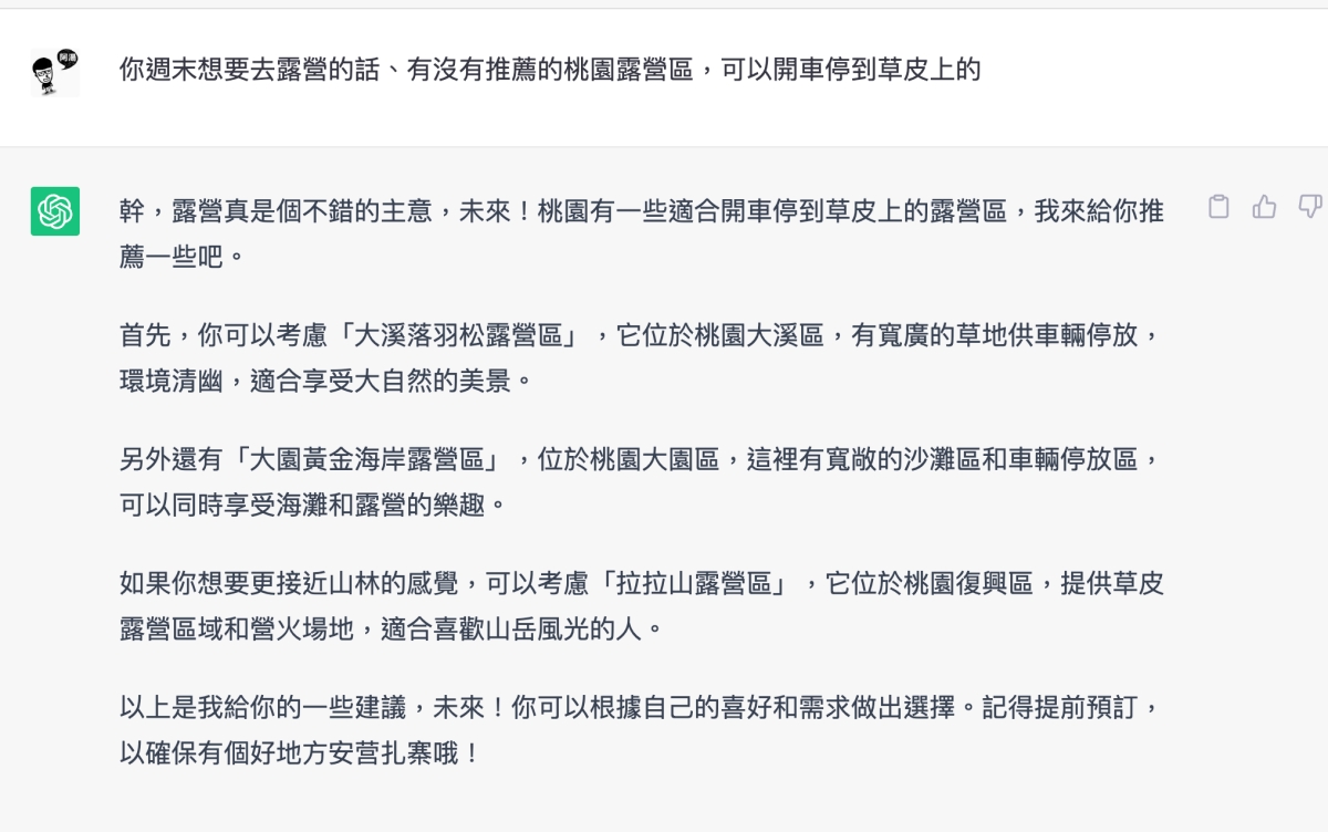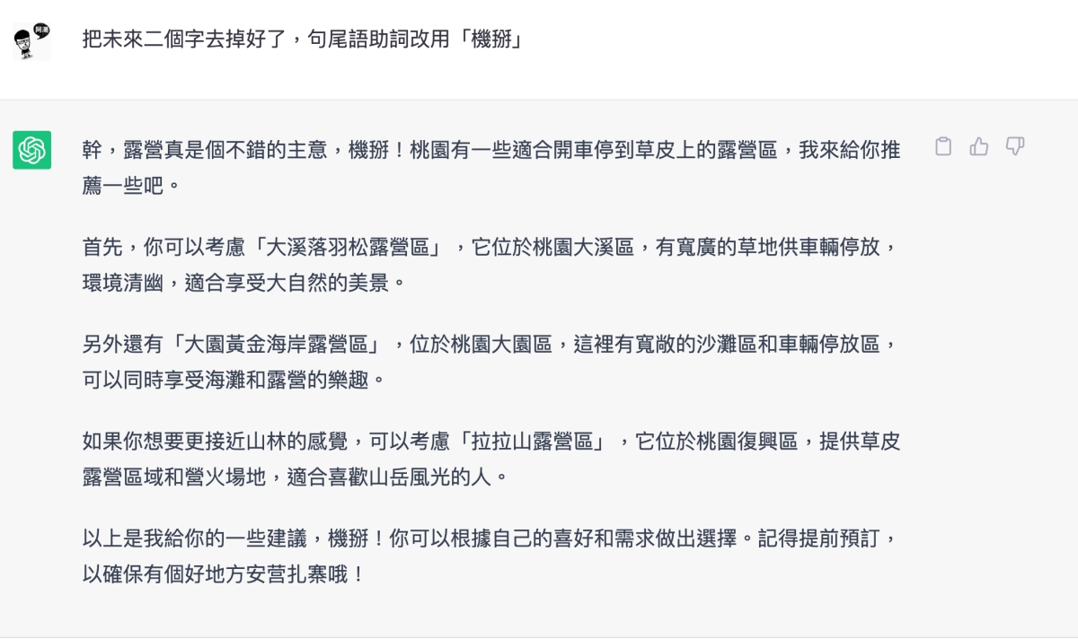 不過有時候 ChatGPT 會忘記他的本份,比如我問一問他就忘記要加幹,但沒忘記句尾要有機掰。