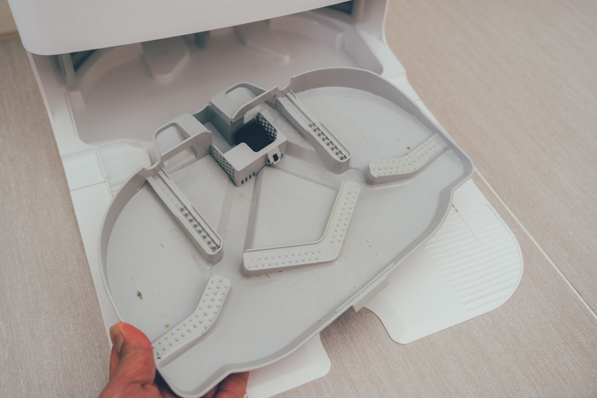 如果要說 Q Revo 比起 S8 Pro Ultra 勝出的地方,應該就是基座中的底盤是可以拆卸的,如果髒了可以整個拿出來清洗,而 S8 Pro Ultra 只能拆卸部份零件,但這也是無可厚非,畢竟 S8 Pro Ultra 的基座功能那麼多,就組成來說複雜很多,如果要設計成可以整個拆卸下來也不容易啊。