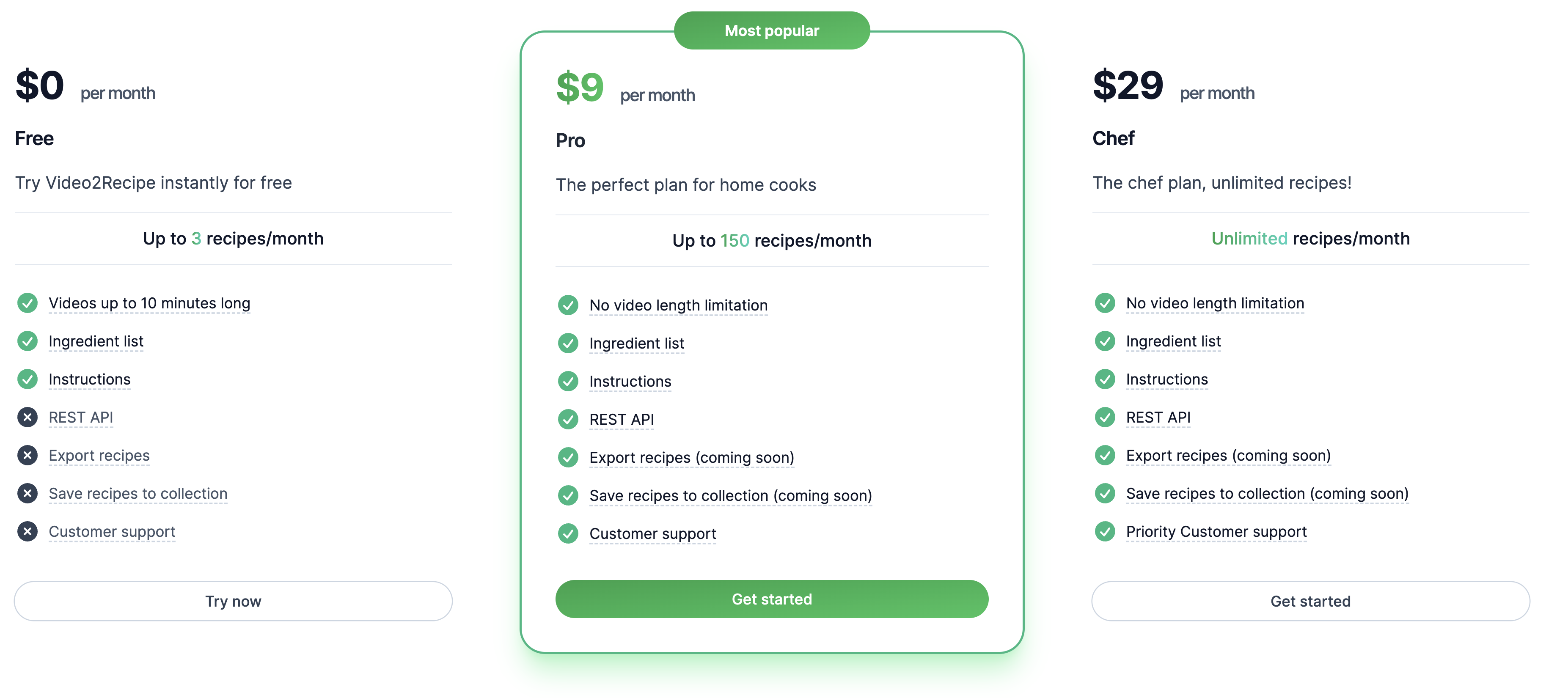 免費的部份,每部影片只能 10 分鐘內,一個月使用三支影片,不過其實只要換了 IP 就能突破次數的問題,但其實很多食譜都超過十分鐘,如果你真的很常料理,可以付費使用應該很划算。