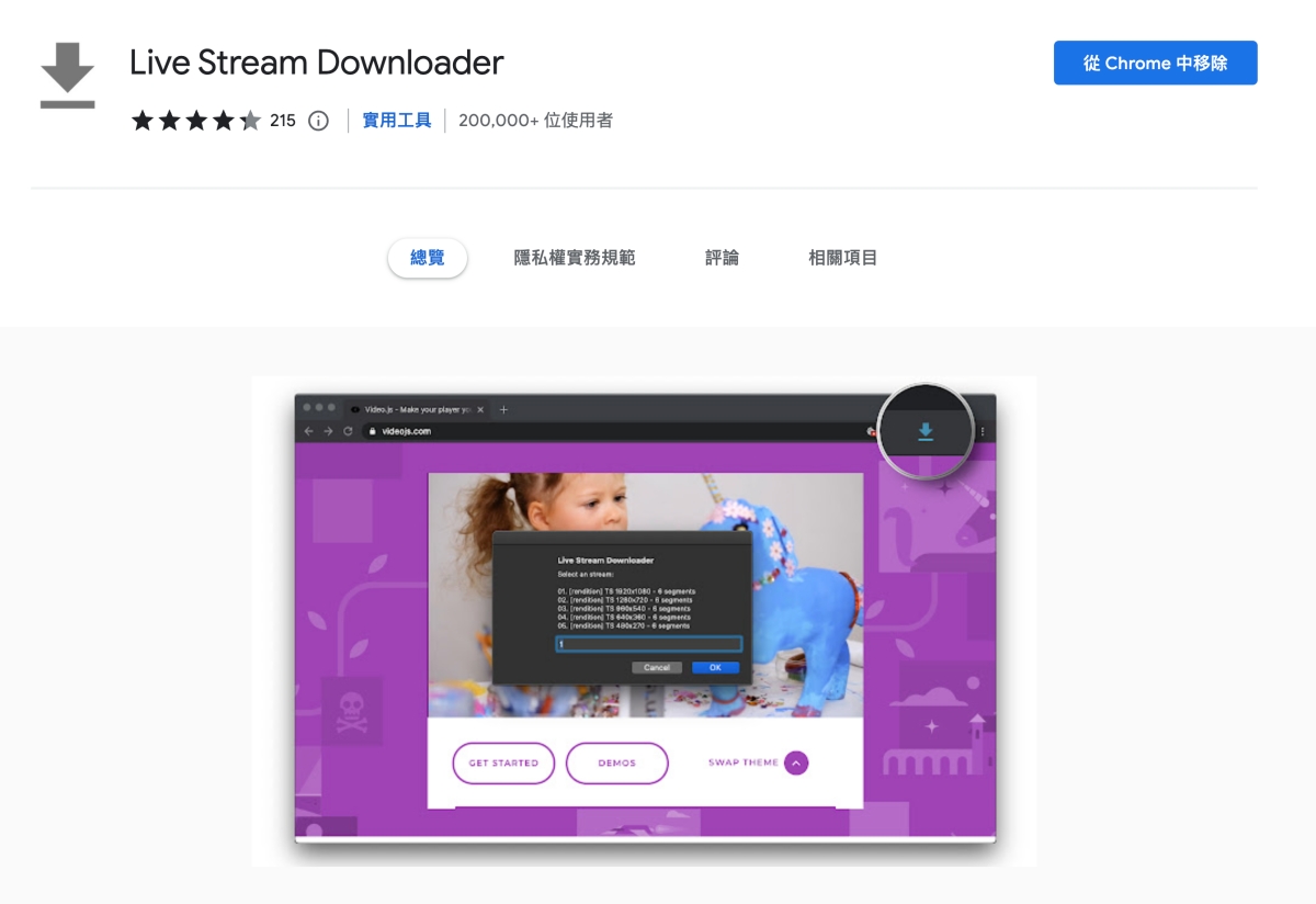 Chrome Store:請點我前往我們要用的是 Chrome 擴充套件 Live Stream Downloader,其實還有其它方式,比如透過線上工具,電腦軟體等,不過為了讓大家方便點,用擴充套件更直覺一點。
