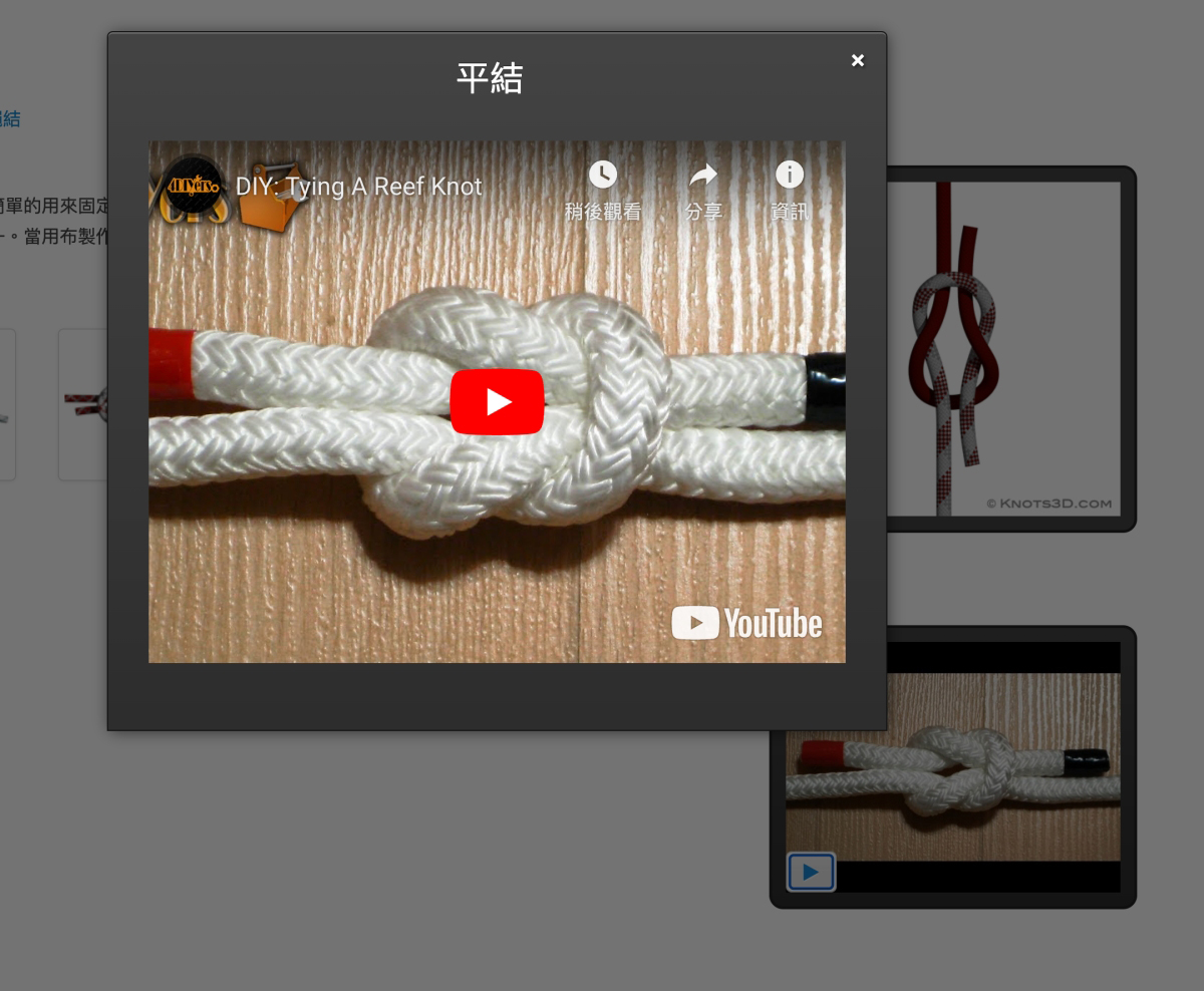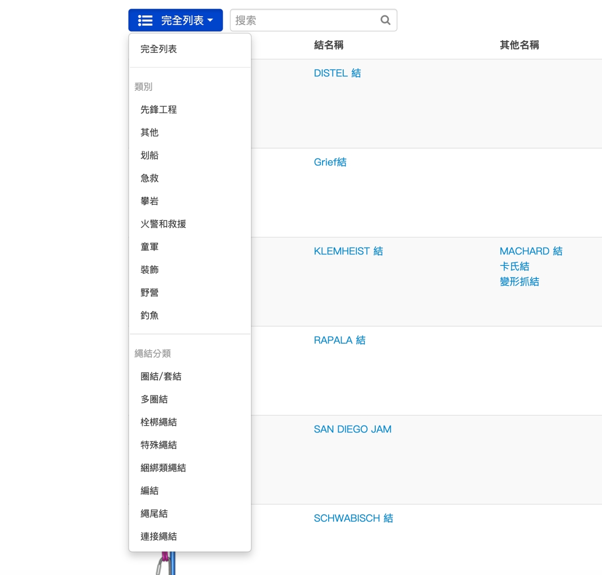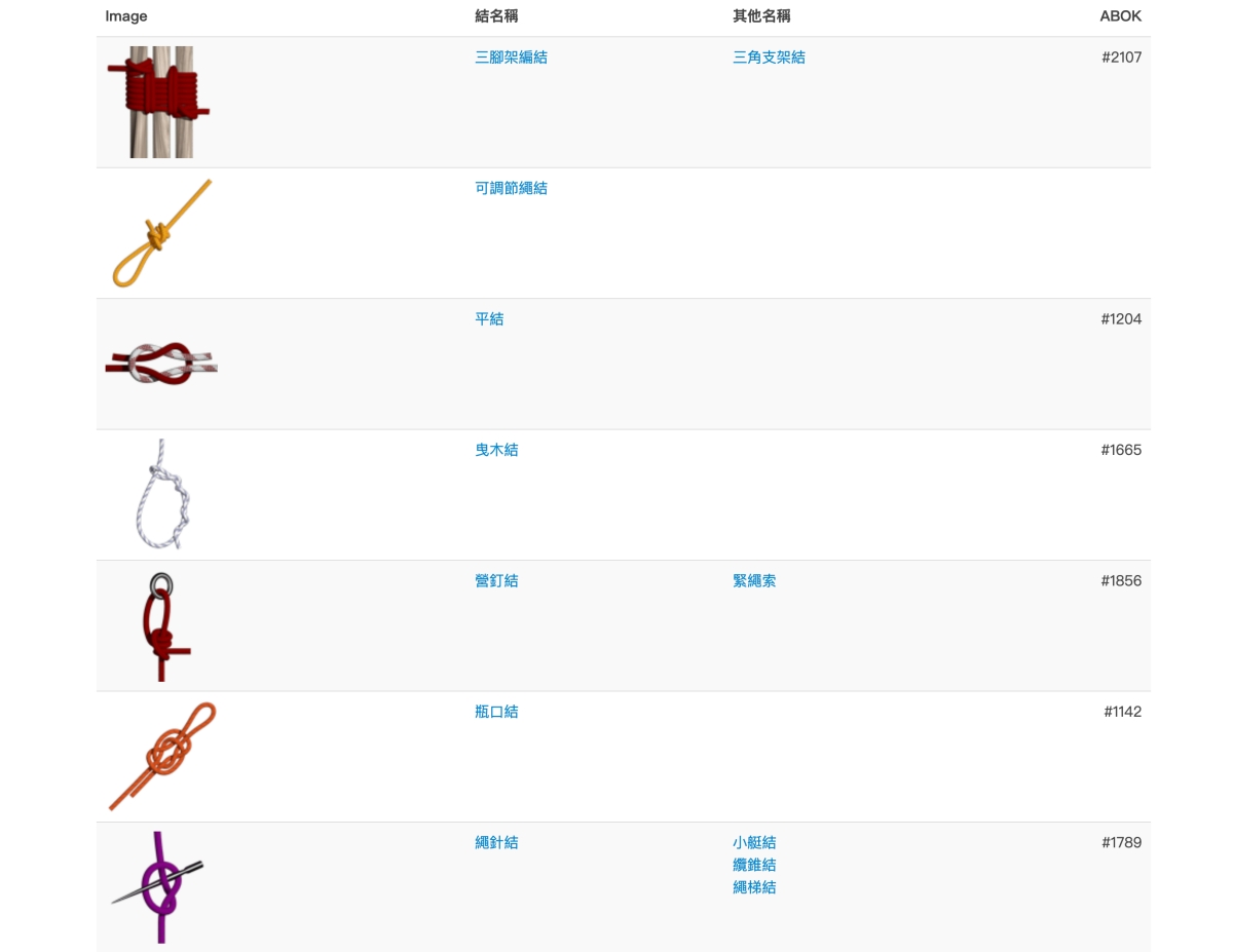 如果你有特別類別的需求,可以直在分類這裡去選擇、看你是要攀岩、野營、釣魚等,通通都有,而且這些類別裡,應該是不會找不到你要的繩結。