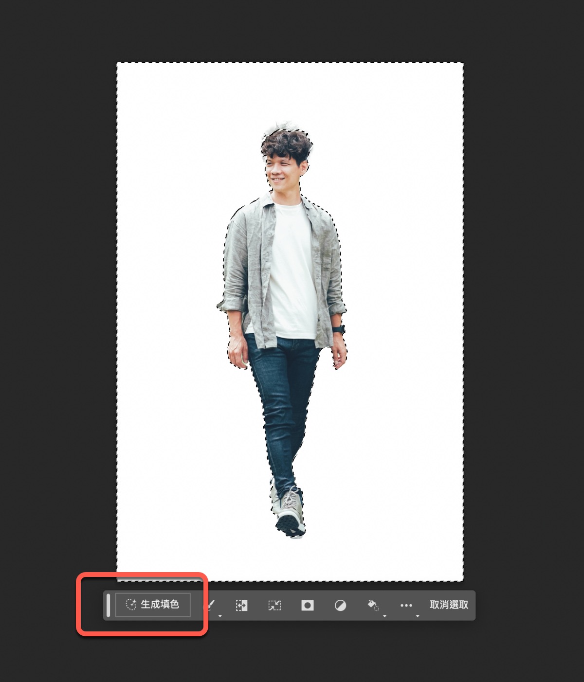 接下來選取你想要生成內容的地方,然後下方就會出現生成填色的功能可以按。