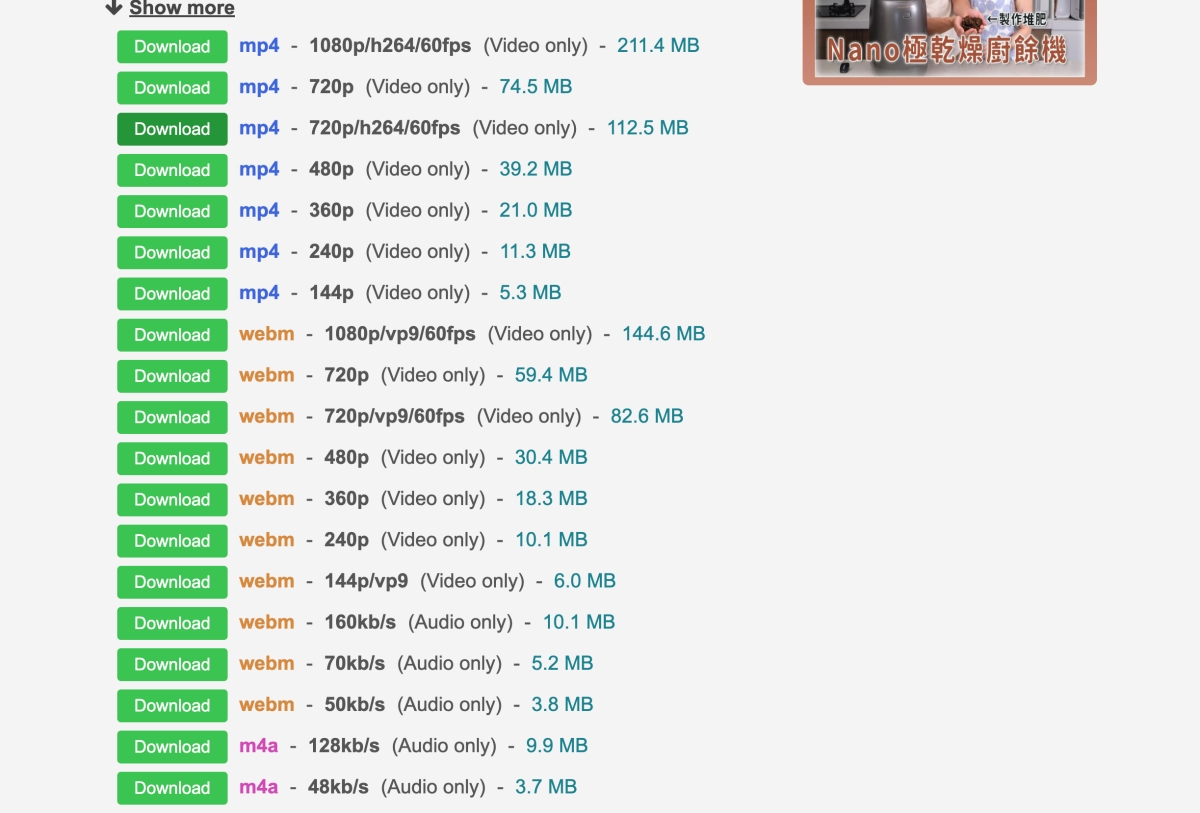 這網站好處是表面沒什麼廣告,基本是在你下載點擊時才會跳出廣告視窗,這點我覺得比起外觀一堆廣告更能接受一點,最高支援 720p 解析度。
