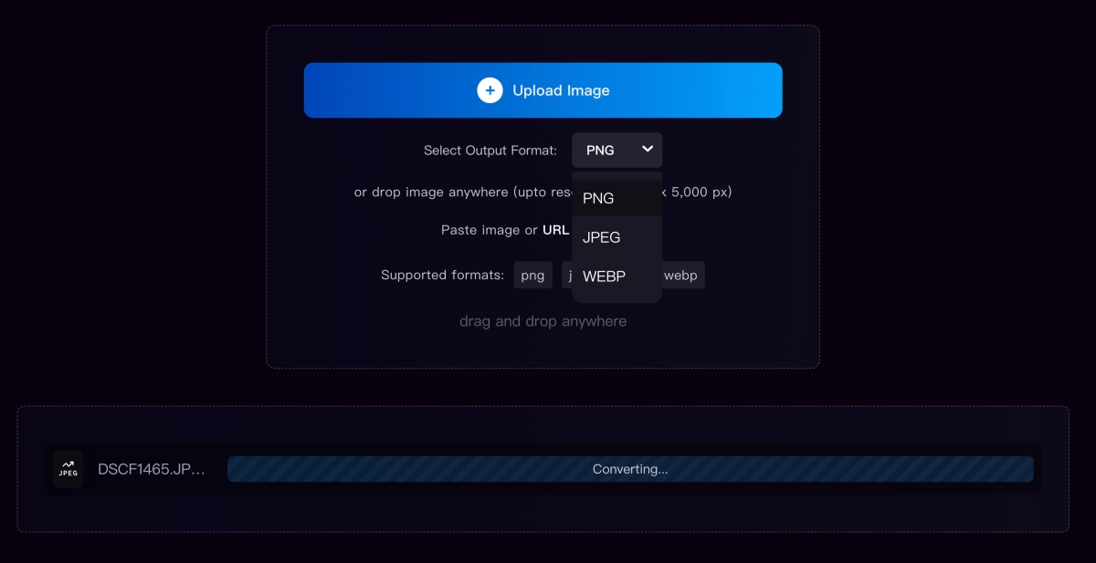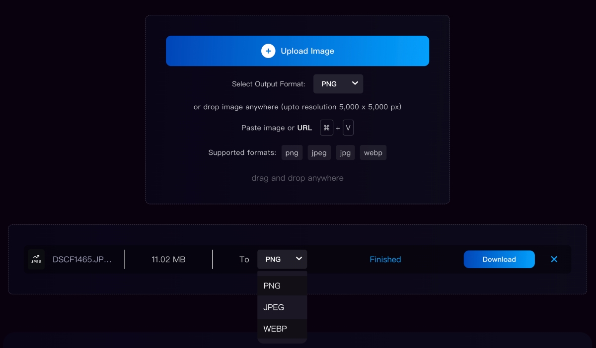 上傳後不急著選格式那些,下方等他轉檔分析就可以,除了自己上傳檔案外,也能直接將網路的圖片右鍵複製連結後,直接 Ctrl + V 貼上(macOS 是 command + V)也是可以的,不用自己下載後再上傳。
