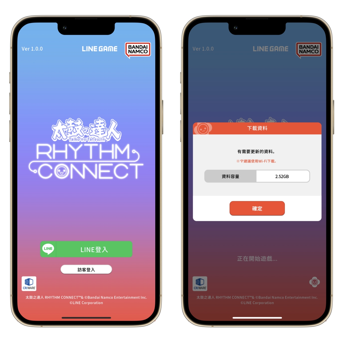 遊戲下載:Android、iOS遊戲基本上也不太需要我做太多介紹,太鼓達人可以用 LINE 來登入,第一次玩要下載資料檔,蠻大的,建議在家用 Wi-FI 可能比較快。