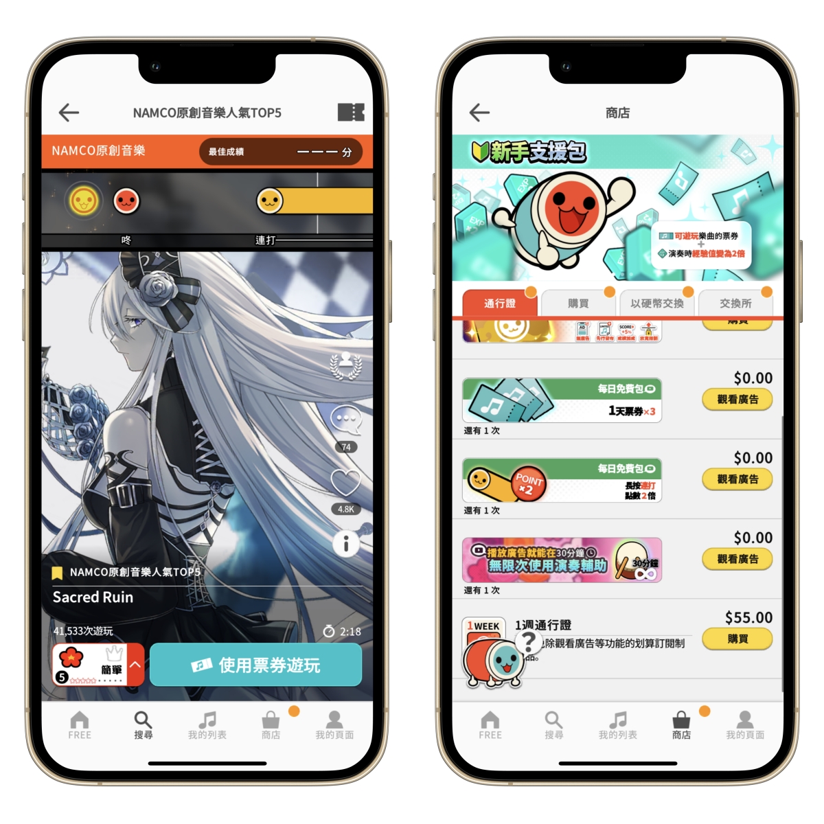 除了基本的歌曲外,其它歌曲都是要用票券玩的,而這些票券除了用買的外,也能買通行證,或者每天透過看廣告獲得三張票券,基本上每天花一點點時間來玩還是不錯的。